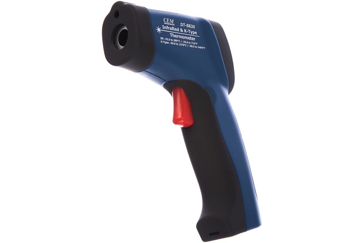 Пирометр СЕМ DT-8830 481561 служит для контактного и бесконтактного измерения температуры объекта. Лазерный указатель позволяет точно наводить прибор на необходимую точку измерения. Термопара позволяет определять температуру предмета в диапазоне от -50 до +1370 градусов. Температурный режим IR составляет от -32 до +380 градусов. Оптическое разрешение равняется 13:1. Модель отличается быстродейственностью: время отклика составляет менее 1 секунды. Коэффициент излучения регулируется в диапазоне от 0.1 до 1.
