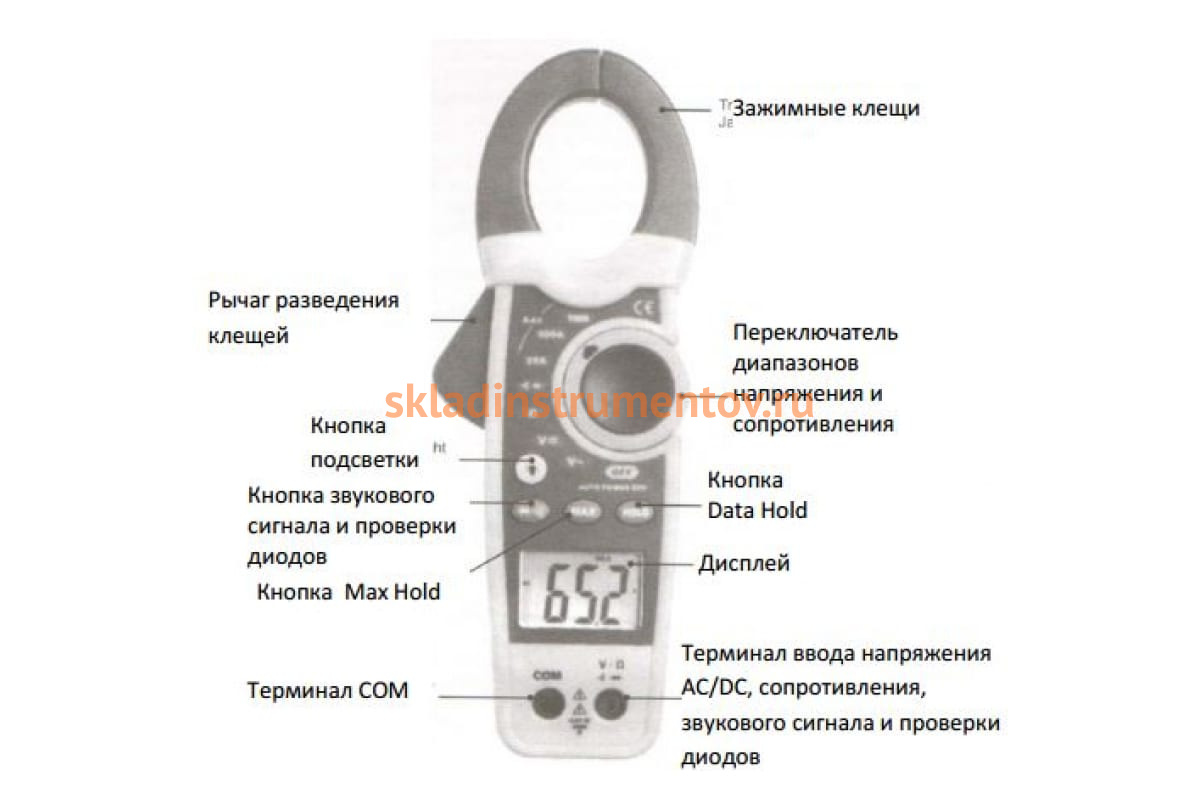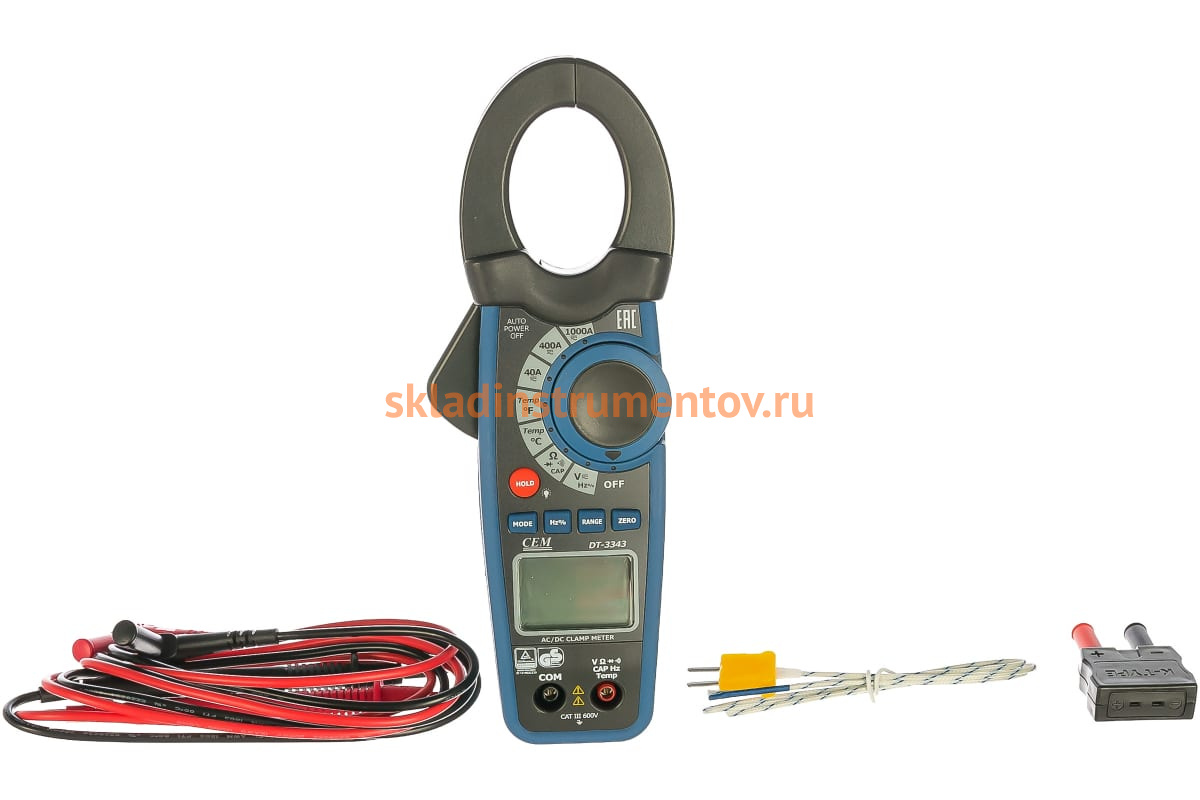 Токовые клещи с датчиком температуры СЕМ DT-3343 480397 способны измерить температуру до 1000 градусов. Также в их функции входят: измерение постоянного/переменного напряжения, ёмкости, частоты, сопротивления, постоянного/переменного тока. При проверке диодов и прозвонки цепи раздается звуковой сигнал. Все произведенные замеры отображаются на ЖК-дисплее с белой подсветкой. При бездействии прибор автоматически отключается через 15 минут.