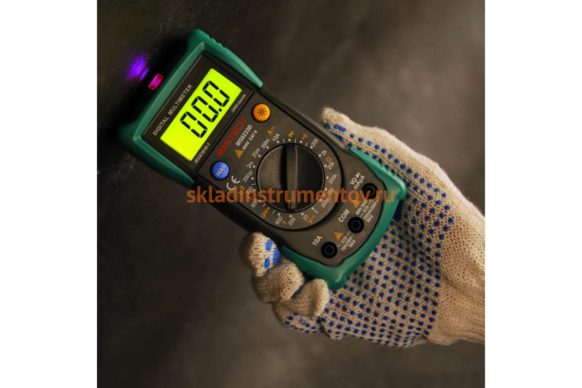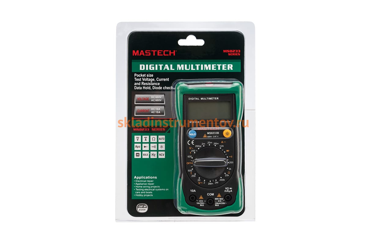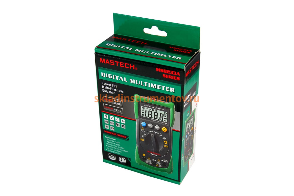 Универсальный мультиметр MASTECH MS8233B 13-2016 измеряет постоянное и переменное напряжение, а также постоянный ток и сопротивление в цепи. С помощью данного прибора можно проводить тестирование диодов и осуществлять прозвонку целостности цепи, что делает его универсальным.