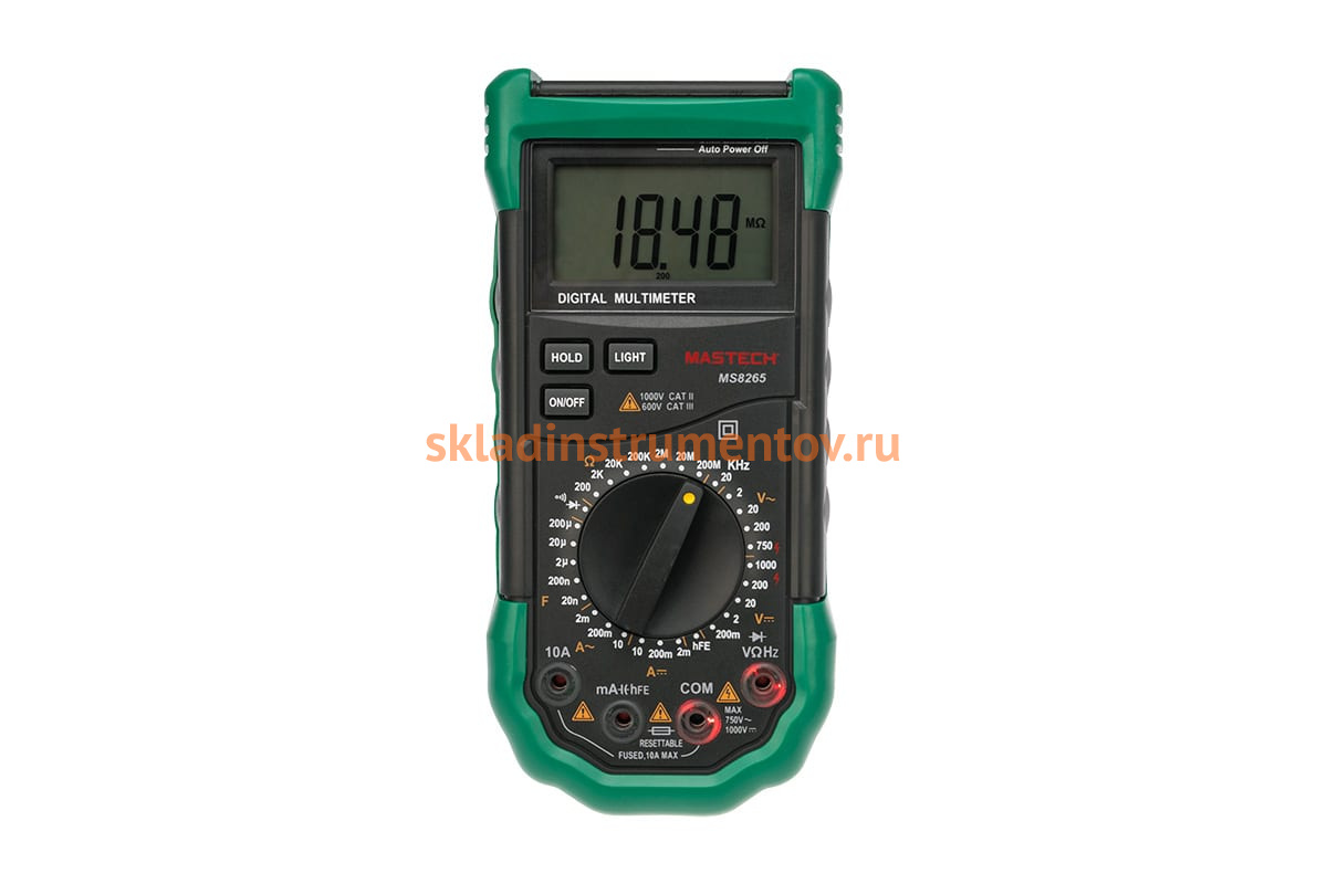 Профессиональный мультиметр MASTECH MS8265 13-2060 предназначен для измерения для измерения постоянного и переменного напряжение, а также постоянного и переменного тока, сопротивления в цепи, емкости и частоты. Также можно проводить тестирование диодов и осуществлять прозвонку целостности цепи, что делает инструмент универсальным.