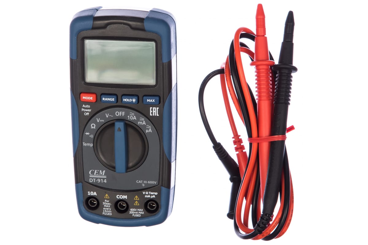 Цифровой мультиметр СЕМ DT-914 481509 оснащен простой и понятной системой переключения режимов работы. Небольшие габариты и вес позволяют без труда транспортировать прибор в кармане куртки. Двойная изоляция корпуса защищает оператора от удара током при измерении электропараметров кабеля под высоким напряжением.