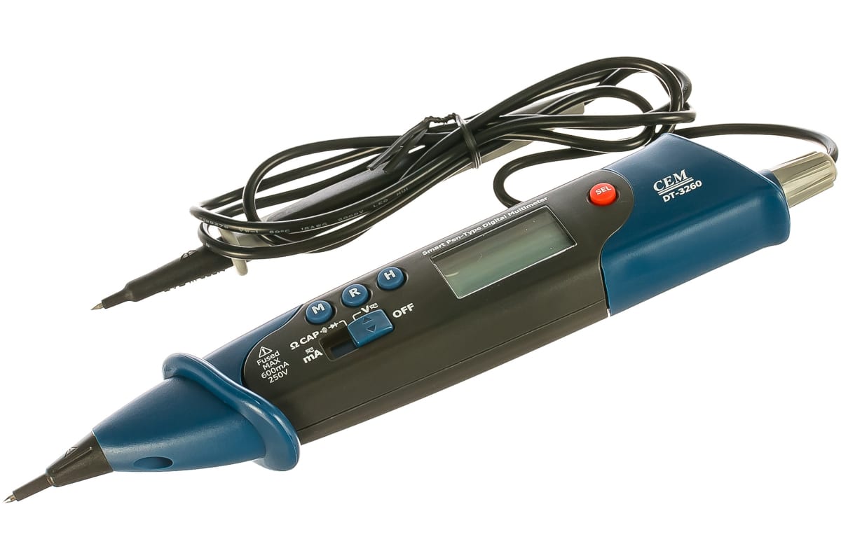 Карманный цифровой мультиметр СЕМ DT-3260 480366 - простой и удобный прибор для электрика, сборщика небольших электроприборов, домашнего мастера. Модель позволяет быстро и безопасно определять величину напряжения, силы тока, сопротивления и емкости. Для удержания показания достаточно нажать кнопку Н. Кнопка R служит для выбора нужного диапазона измерений.