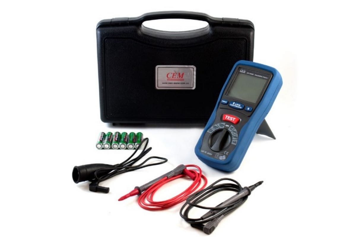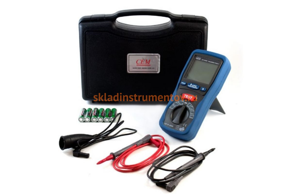 Цифровой тестер изоляции СЕМ DT-5500 480472 оснащен LCD-дисплеем большого размера с подсветкой, что обеспечивает комфортное считывание показаний. Специализированный инструмент позволяет быстро и точно определять сопротивление изоляции, напряжение постоянного и переменного тока. Модель питается от 6 батареек 1.5 В (тип АА).