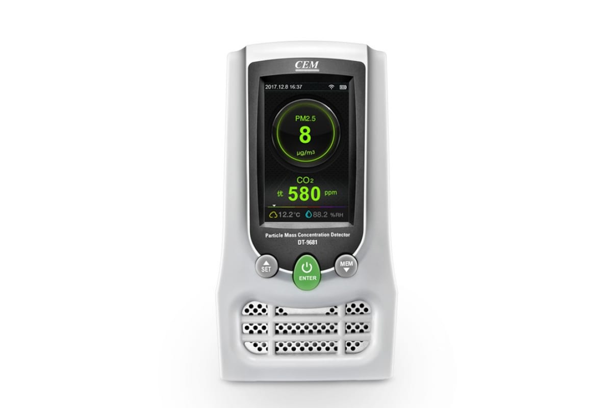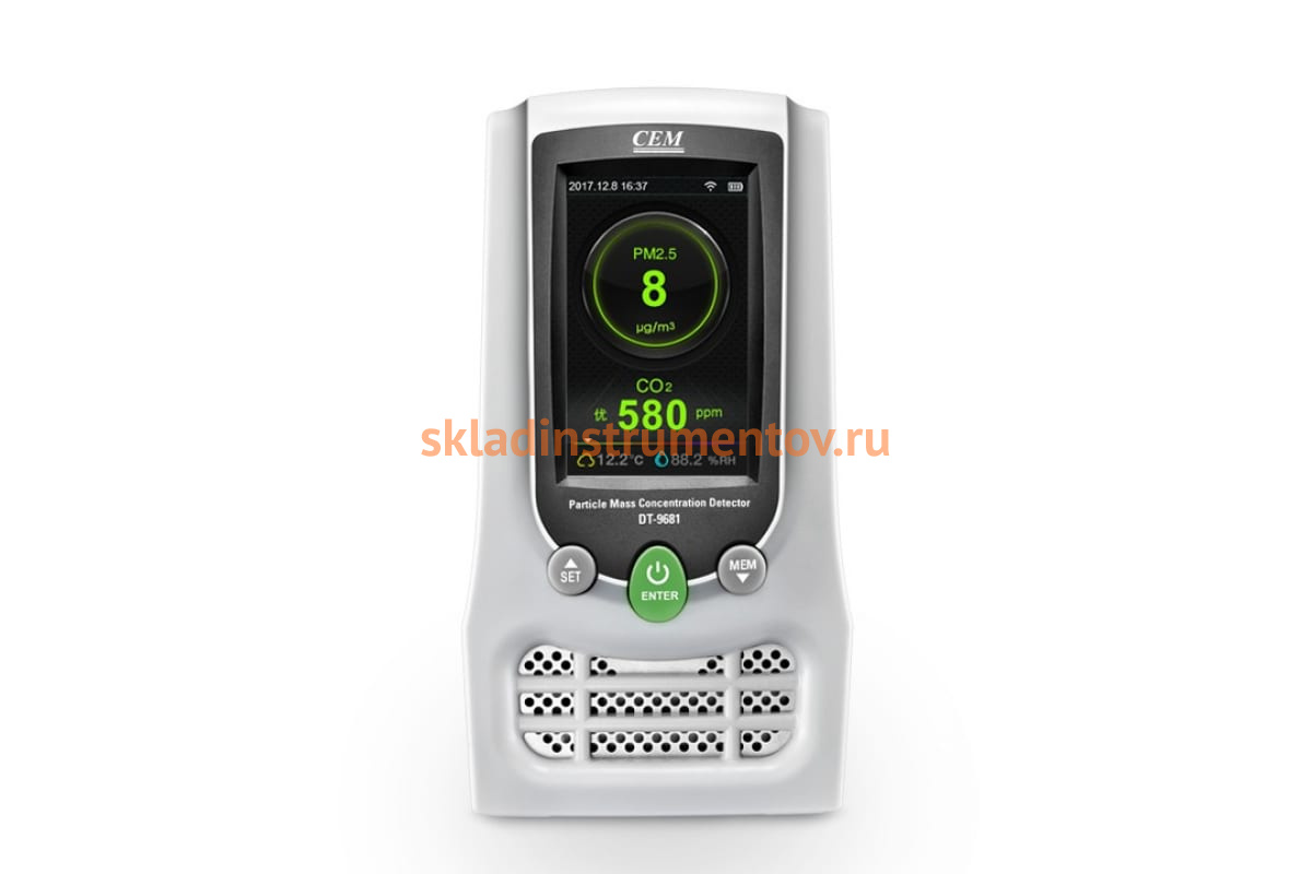 Счётчик пылевых частиц СЕМ DT-9680 482483 предназначен для определения содержания в воздухе твердых частиц РМ2.5, РМ10, летучих органических соединений, формальдегида и концентрацию углекислого газа.