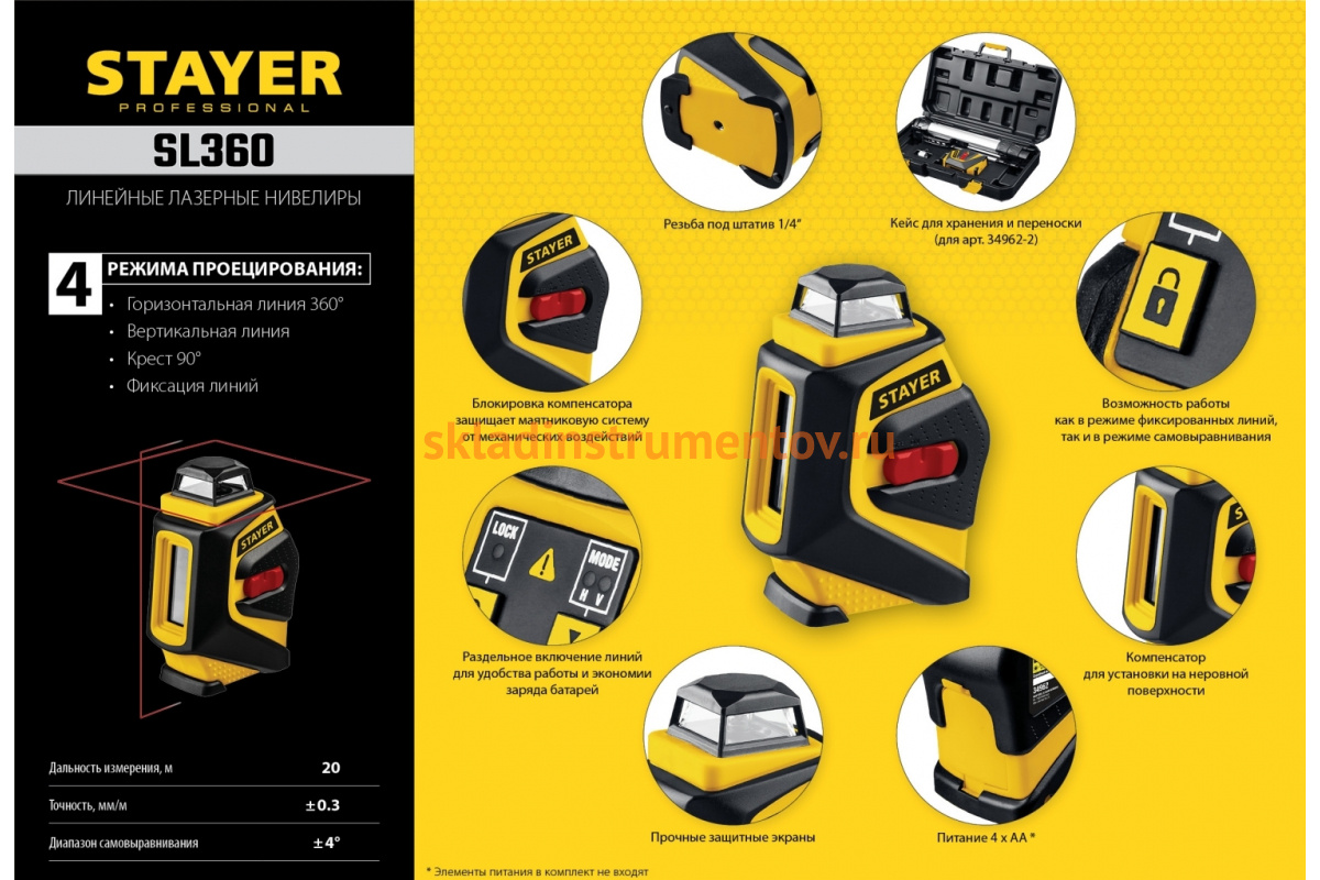 Лазерный нивелир STAYER SL360 34962 пригодится при укладке плитки, установке мебели, строительных работах. Имеет 4 режима проецирования: горизонтальная линия 360°, вертикальная линия, крест 90°, фиксация линий.