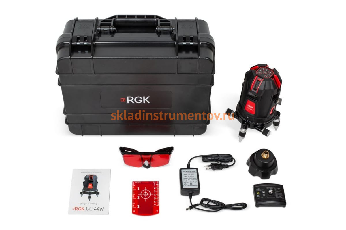 Лазерный нивелир RGK UL-44W оснащается электронной антивибрационной системой для уверенной работы на площадке с включенной вибротехникой. Фирменный аккумулятор гарантирует стабильное и продолжительное функционирование прибора на одном заряде батареи. Влагозащита корпуса по стандарту IP54 обеспечивает долгий срок службы внутренних узлов. Использование усиленного лазера гарантирует видимость проекций даже в солнечную погоду. Горизонтальный лимб и два винта дают возможность плавно и точно наводить нивелир на цель.