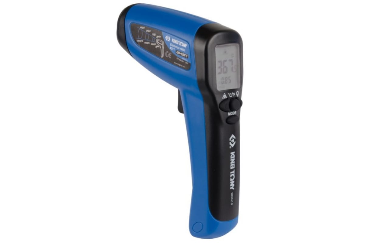 Бесконтактный пирометр KING TONY 9DN12 используется на станциях технического обслуживания, в автосервисах и автомастерских. Он предназначен для бесконтактного измерения температуры поверхности различных объектов. Полученные данные выводятся на крупный ЖК-дисплей с подсветкой, позволяющей работать даже при слабом освещении. Точный выбор участка измерения достигается с помощью инфракрасной точки позиционирования.