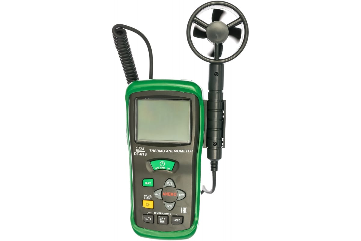 Измеритель скорости воздуха и температуры СЕМ DT-618 480502 - это чувствительный и точный прибор для анализа воздушной среды. ЖК-дисплей позволяет считывать данные непосредственно в ходе работы. Низкое энергопотребление гарантирует экономный расход заряда батареи. Длина спирального кабеля составляет 2 метра. Измеритель регистрирует максимальные значения скорости воздуха.