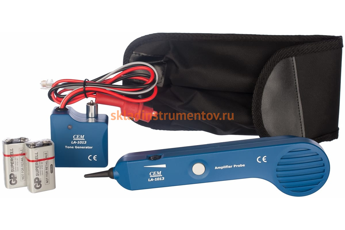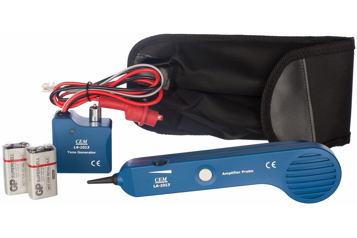 Комплект для поиска скрытой проводки без напряжения СЕМ LA-1013 481202 - это специализированный инструмент для сотрудников телефонных станций и работников кабельных бригад. Модель позволяет находить места обрыва телефонных линий, сетевых коммуникаций и скрытой проводки. Питающим элементом служат батарейки 9 В (одна в тоновый генератор, одна в пробник). Минимальный набор кнопок делает управление комплектом простым и доступным. На выходе прибора - прямоугольный сигнал 6 В, 1 кГц.