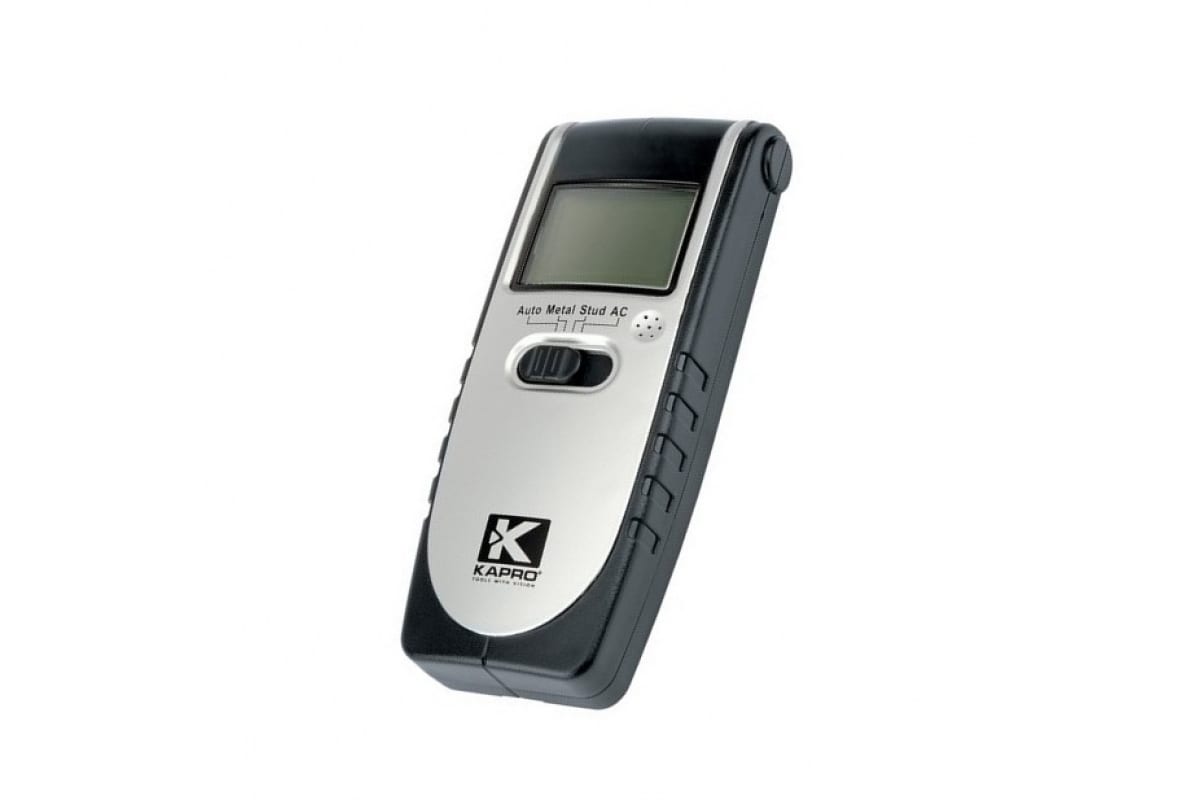 Обнаружитель скрытой проводки, металла и дерева KAPRO 389 - это функциональный и удобный в использовании инструмент. Он предназначен для обнаружения скрытой электропроводки, металлических гвоздей через гипсокартон, штукатурку и прочие стеновые материалы. Таким образом можно предотвратить риск поражения электрическим током при сверлении. Также модель определяет и дерево. С помощью переключателя выбирается поисковый материал, и при обнаружении звучит характерный сигнал. Для удобства работы в темное время суток предусмотрена подсветка дисплея.