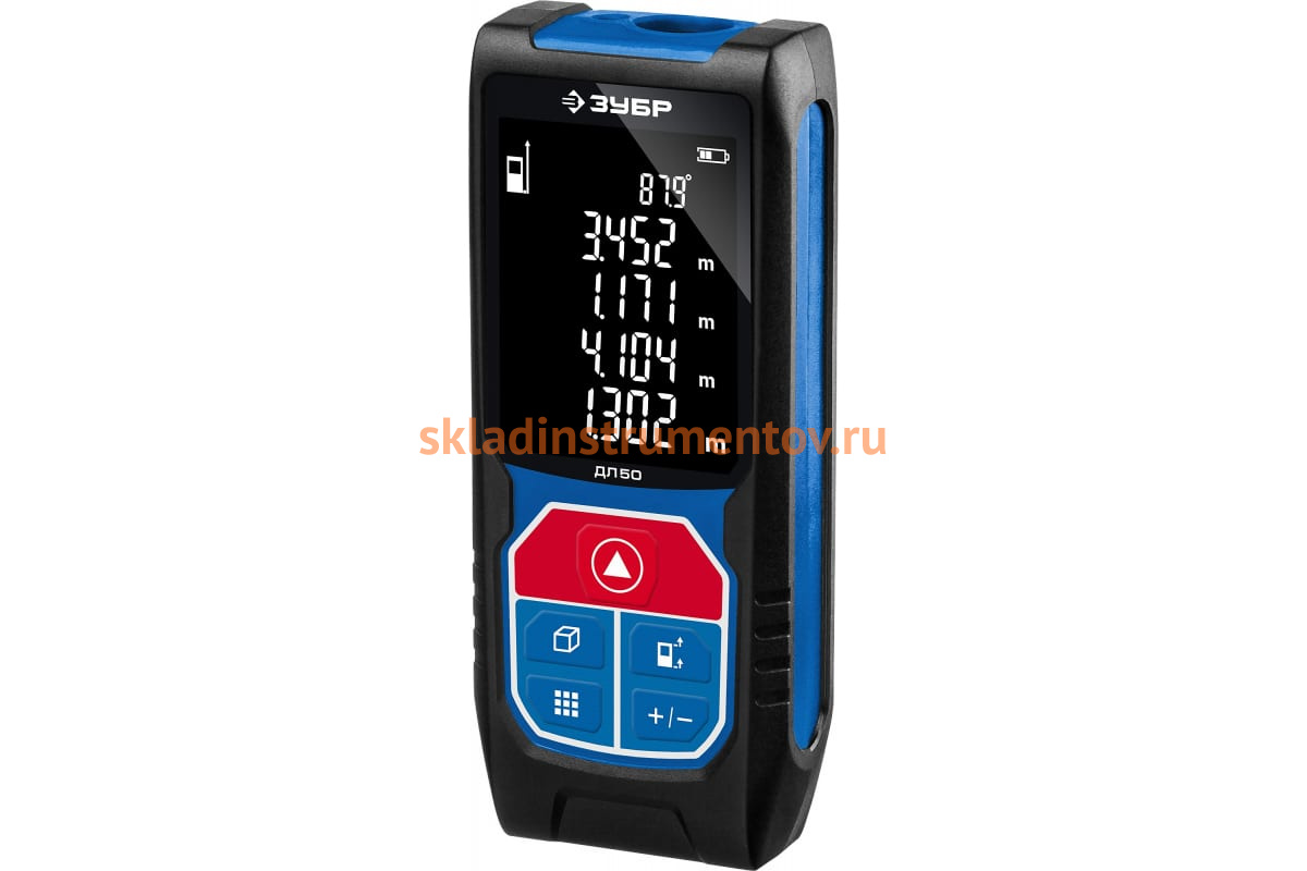 Лазерный дальномер Зубр ПРОФ. 34925 применяется для измерения длины, объема, площади.