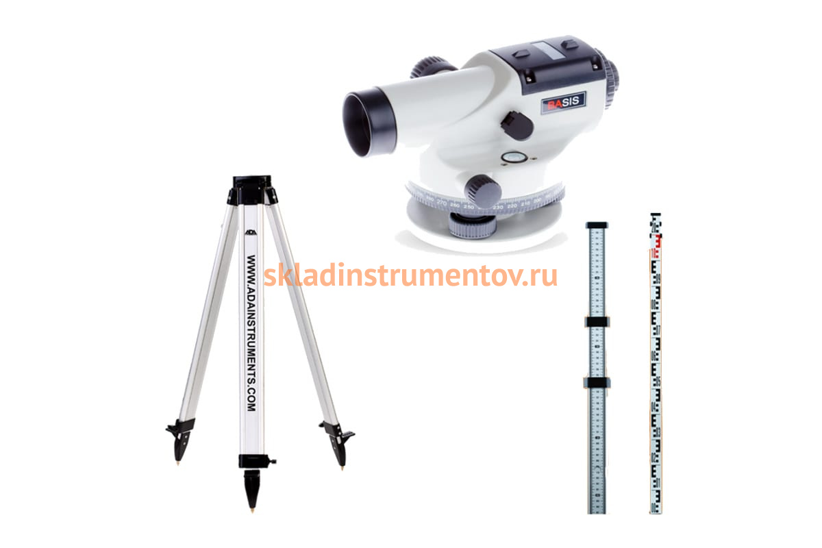 Оптический нивелир ADA Basis с поверкой + рейка STAFF 3 + штатив Light S А00197_К подходит для строительных и инженерных работ. Имеет горизонтальный лимб в 360° для выполнения угловых измерений. Прорезиненные покрытия винтов фокусировки и наведения делают работу более удобной.