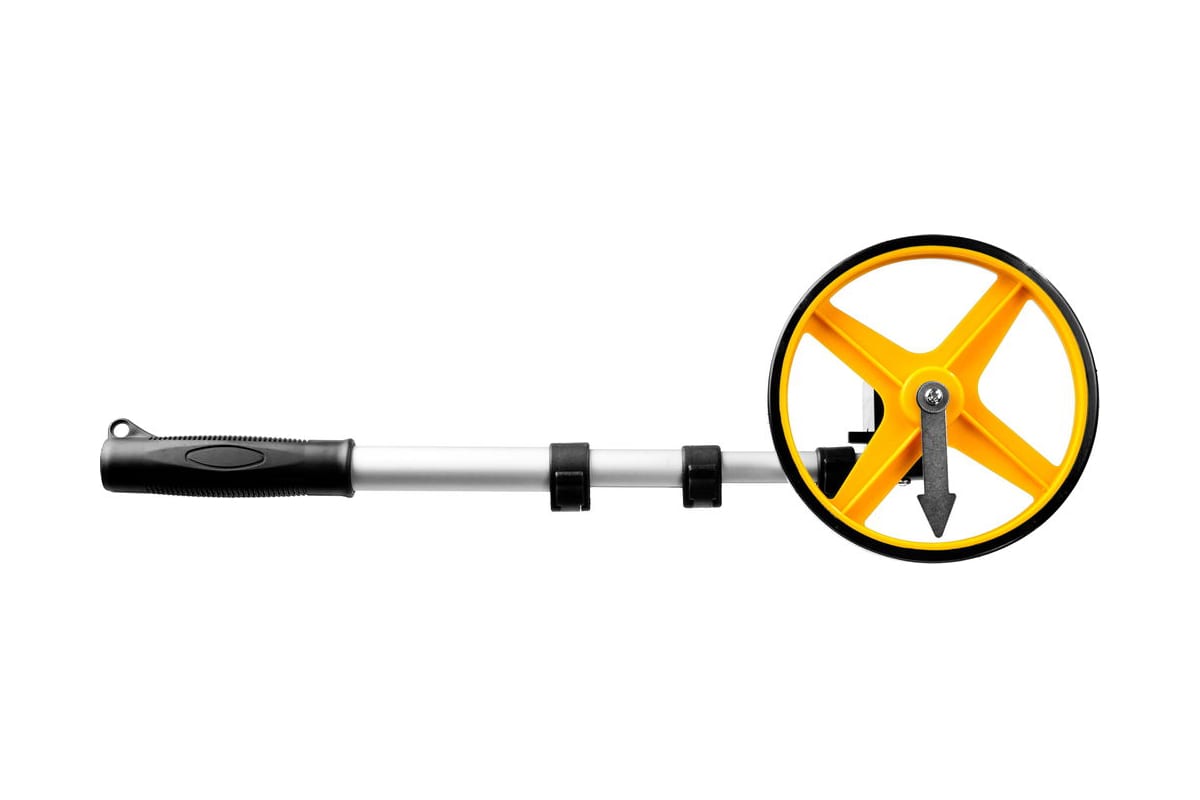 Мерительное колесо 9999м STAYER PROFI 34190_z01 изготовлено с применением современных материалов, что делает его очень прочным, легким и долговечным в эксплуатации. Данное приспособление служит для проведения измерений на больших площадях, например: при укладке кабеля, ландшафтных или строительных работах, а также при составлении схем ДТП.