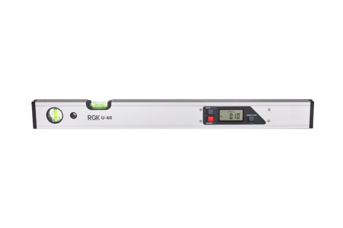 Цифровой уклономер RGK U-60 пригодится в строительстве для измерения уклона плоскости. Выравнивание осуществляется при помощи двух пузырьковых уровней с погрешностью не более ±0.029°. Прибор имеет легкий корпус с ребристыми плоскостями, благодаря чему можно проводить измерения даже в строительных перчатках. Магнитное крепление позволяет прикрепить уклономер на любую металлическую поверхность при работе с вертикальными плоскостями.