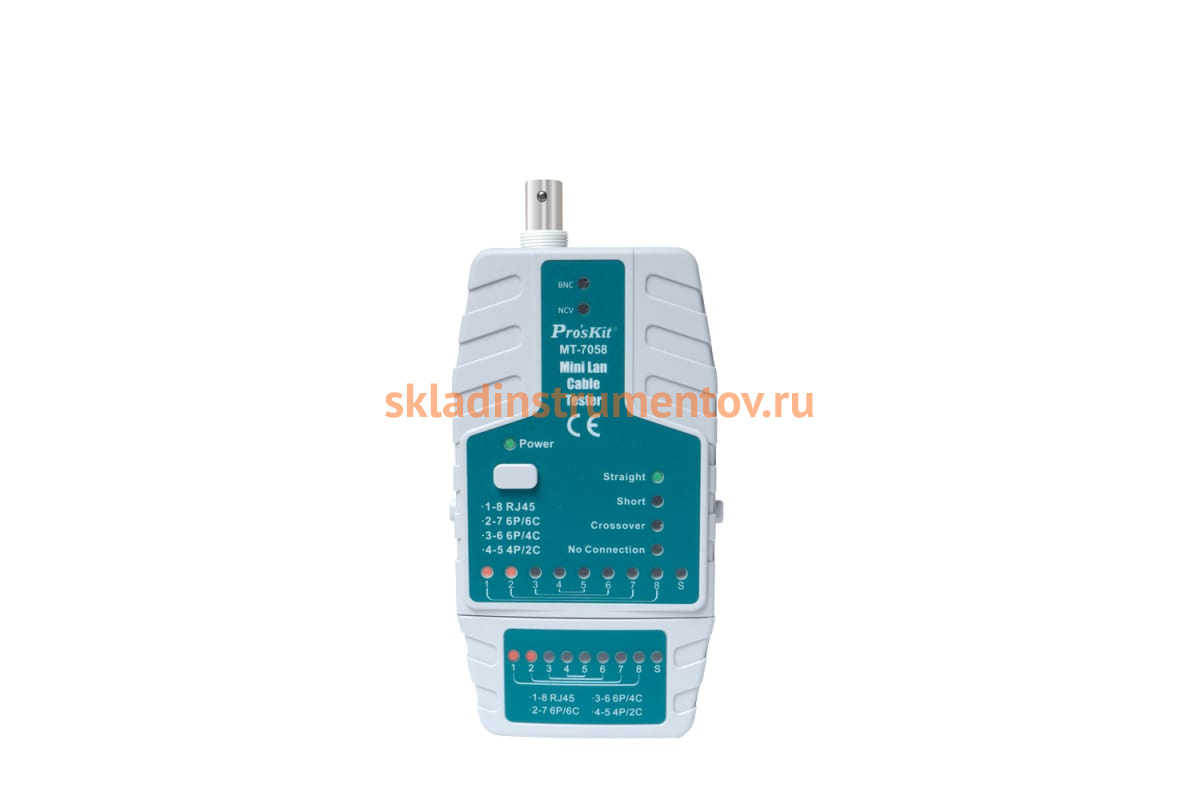 Кабельный тестер ProsKit MT-7058 00284942 отличается компактными размерами. Предназначен для проверки и выявления неисправностей, как обрывы, скрещивание, расщепление пар и т.д. Подходит для LAN-кабелей, RJ45 TIA568A / B (AT & T) 258A), 10 Base-T, Token Ring, RJ-11/RJ-12 USOC и коаксиальный кабель BNC.