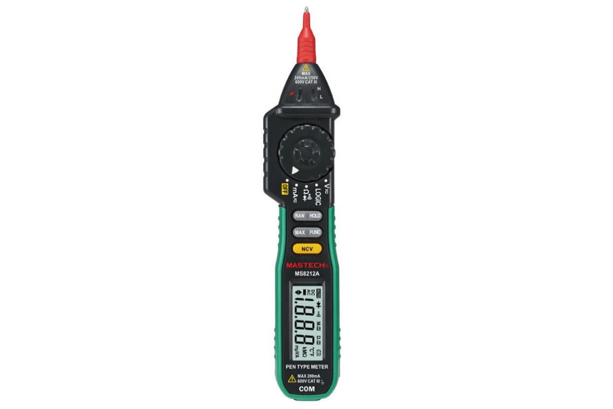 Цифровой мультиметр Mastech MS8212А 65294 - карманный прибор, предназначенный для измерения постоянного/переменного напряжения, силы тока, сопротивления. Переменное напряжение определяется бесконтактным способом. Имеются режим "прозвонка" и диод-тест. Благодаря функции DATA HOLD, можно зафиксировать последнее полученное измерение на дисплее. Разрядность дисплея составляет 2000 отсчетов. Модель работает от 2 батареек 1.5 В типа ААА.