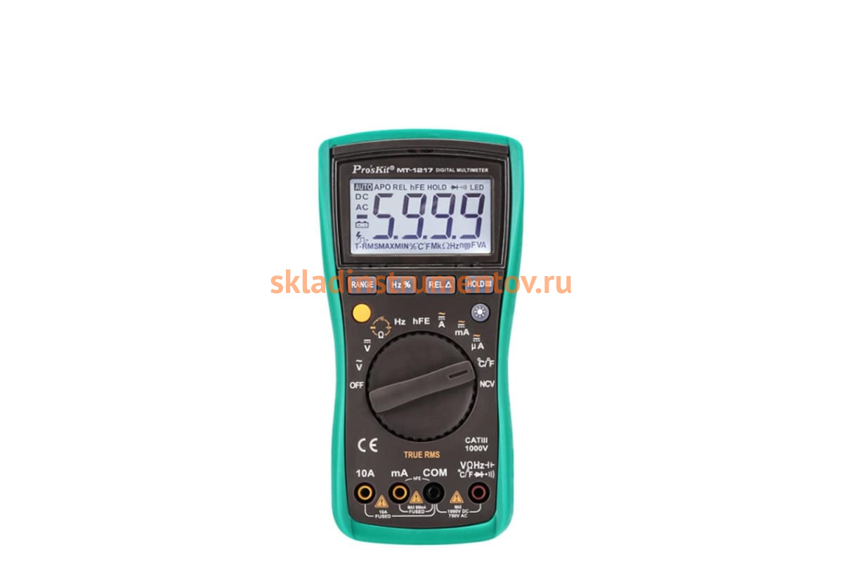 Мультиметр ProsKit MT-1217 00325924 применяется для измерения напряжения, силы тока, сопротивления, емкости и температуры. Имеет функции прозвонки цепи и тестирования диодов.