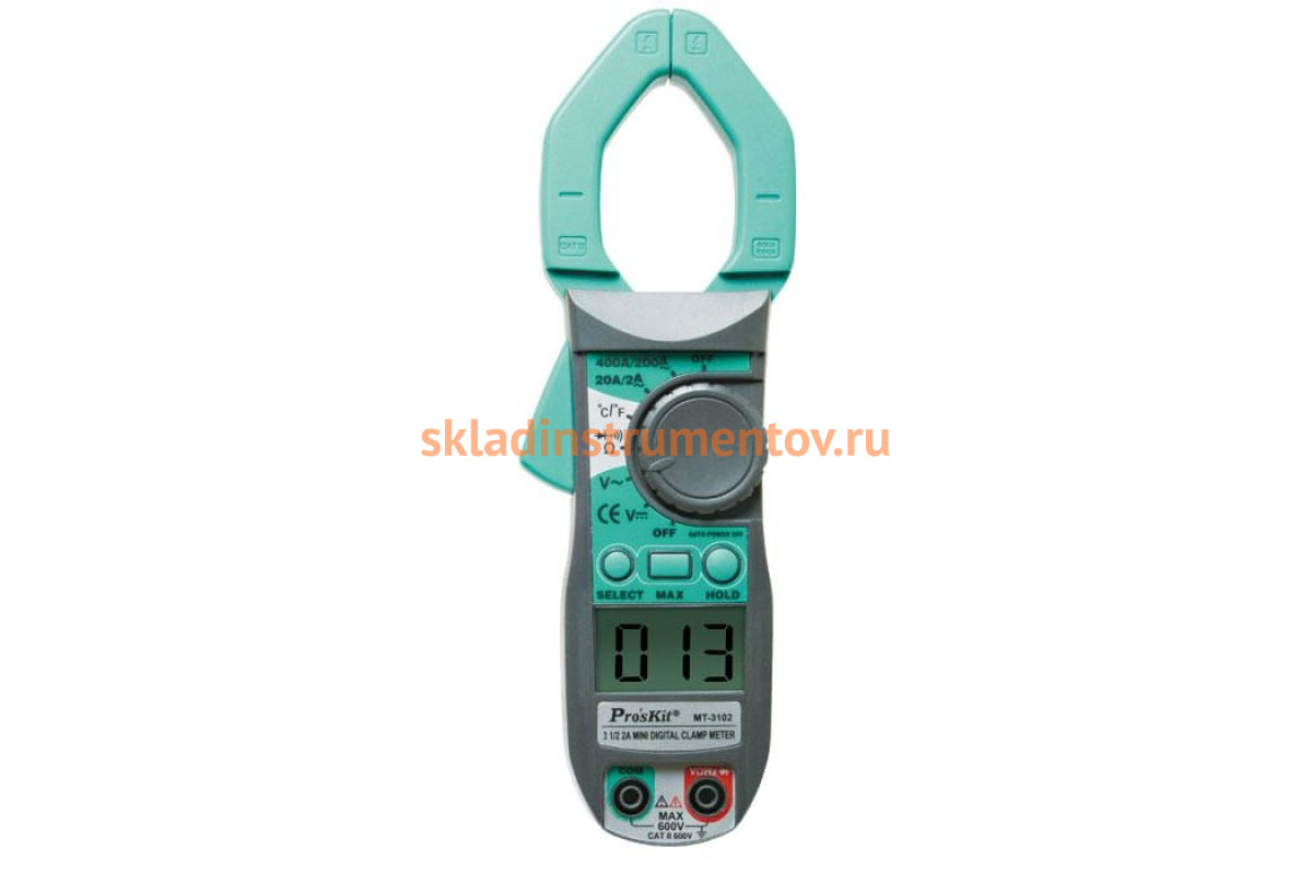Токовые клещи ProsKit MT-3102 00323572 применяются для измерения напряжения, переменного тока, сопротивления и температуры. Базовая погрешность составляет всего 0.8%.