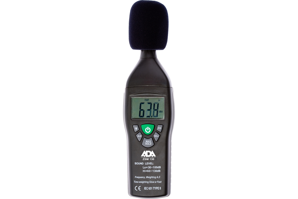 Измеритель уровня шума ADA ZSM 130 А00111 - это прибор, применяемый для контроля качества и уровня звука. Устройство имеет удобную для захвата форму, небольшие габариты и вес. За счет встроенных функций можно не только измерять уровень шума и звукового давления, но и сохранять результаты измерений.