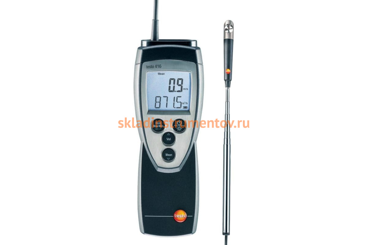 Термоанемометр Testo 425 определяет скорость потока воздуха и температуру. Изделие работает на одном заряде до 20 часов от 9В перезаряжаемой батарейки. Все данные выводятся на ЖК-дисплей с синей подсветкой. Модель обладает большим функционалом, имеет возможность подключать различные зонды для доступа в труднодоступные места, также имеет функцию автоматического отключения при простое, для экономии энергии.