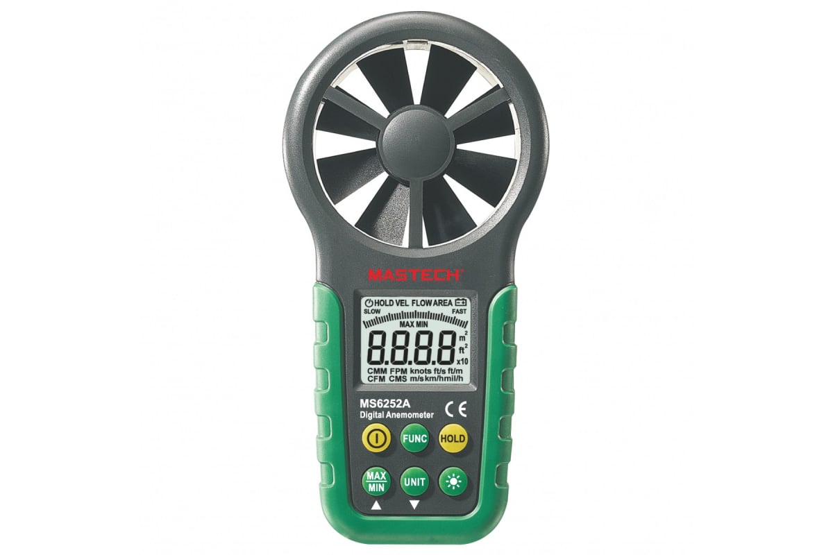 Цифровой анемометр с крыльчаткой Mastech MS6252A 00-00000225 представляет собой компактный профессиональный прибор для определения скорости ветра и расхода воздуха. Имеет переключаемые единицы измерения.