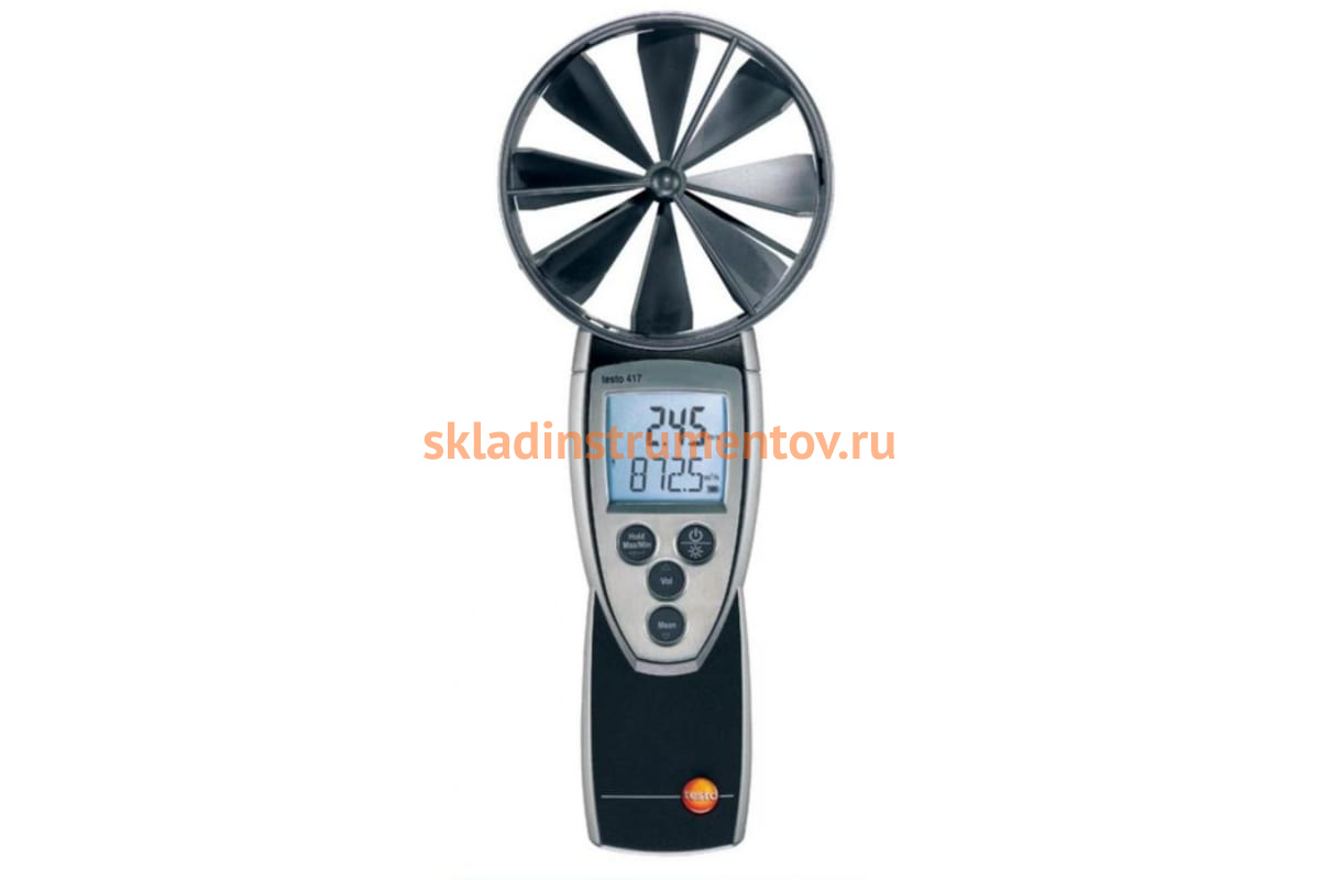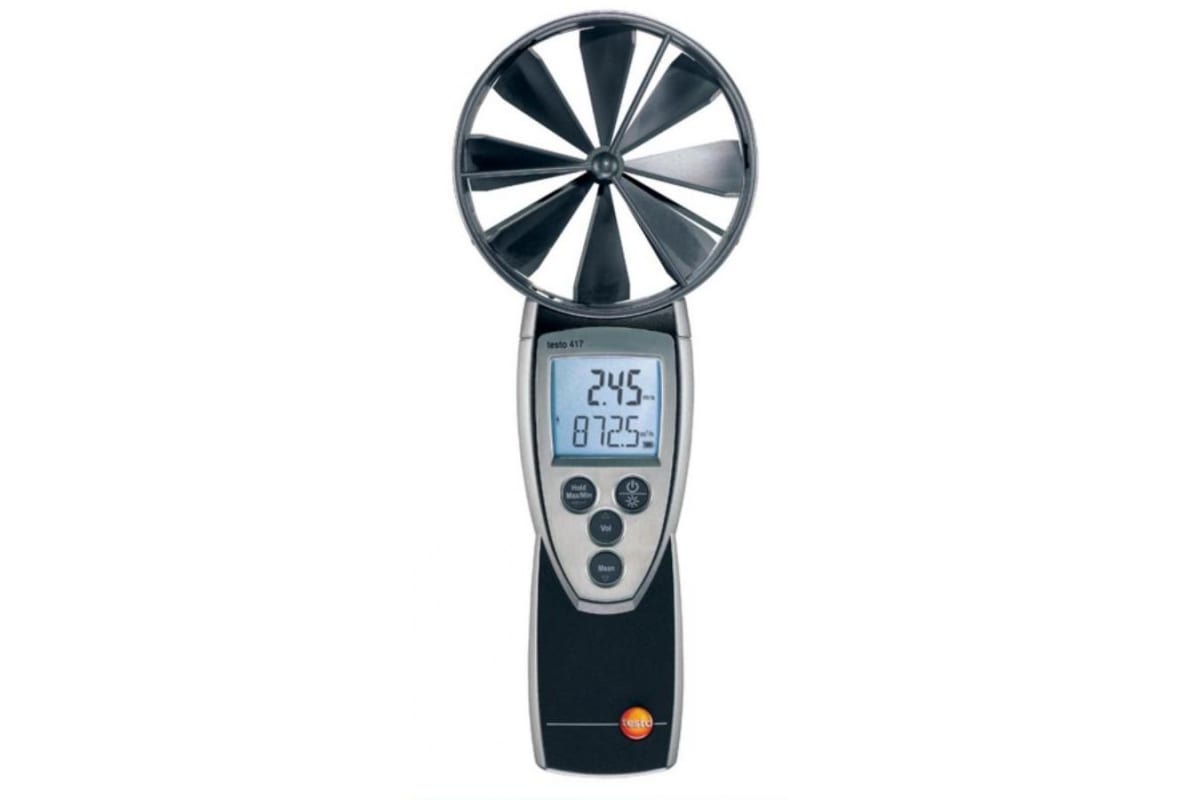 Анемометр Testo 417 с зондом-крыльчаткой 0560 4170П предназначен для измерения скорости воздуха и температуры диаметром 100 мм, а также для измерения объемного расхода. Все произведенные измерения отображаются на дисплее. Для удобной работы в темноте имеется подсветка экрана. Модель прошла процедуру поверки, подтверждением чего является прилагающееся в комплекте свидетельство.