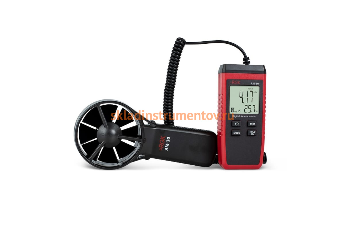 Термоанемометр RGK AM-30 с поверкой 779296 предназначен для измерения скорости и температуры воздушного потока.