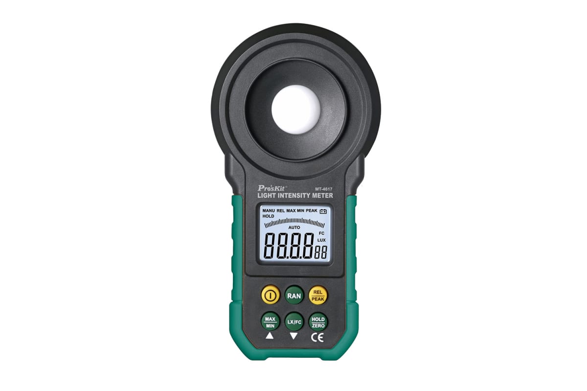 Люксметр ProsKit MT-4617 00333916 - малогабаритное устройство, предназначенное для измерения уровня освещенности рабочих, общественных и жилых помещений. Работает в диапазоне от 20 до 200000 лк.