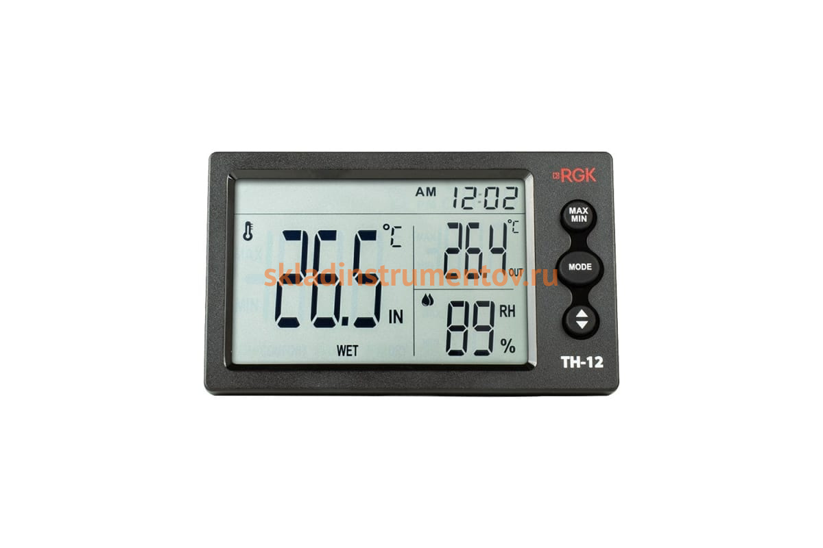 Термогигрометр RGK TH-12 с поверкой 779272 создан для измерения температуры в диапазоне от -10°С до + 50 °С и влажности в пределах от 20% до 90%. Используется для контроля режима хранения на складах и оценки условий труда на производстве или в офисе.