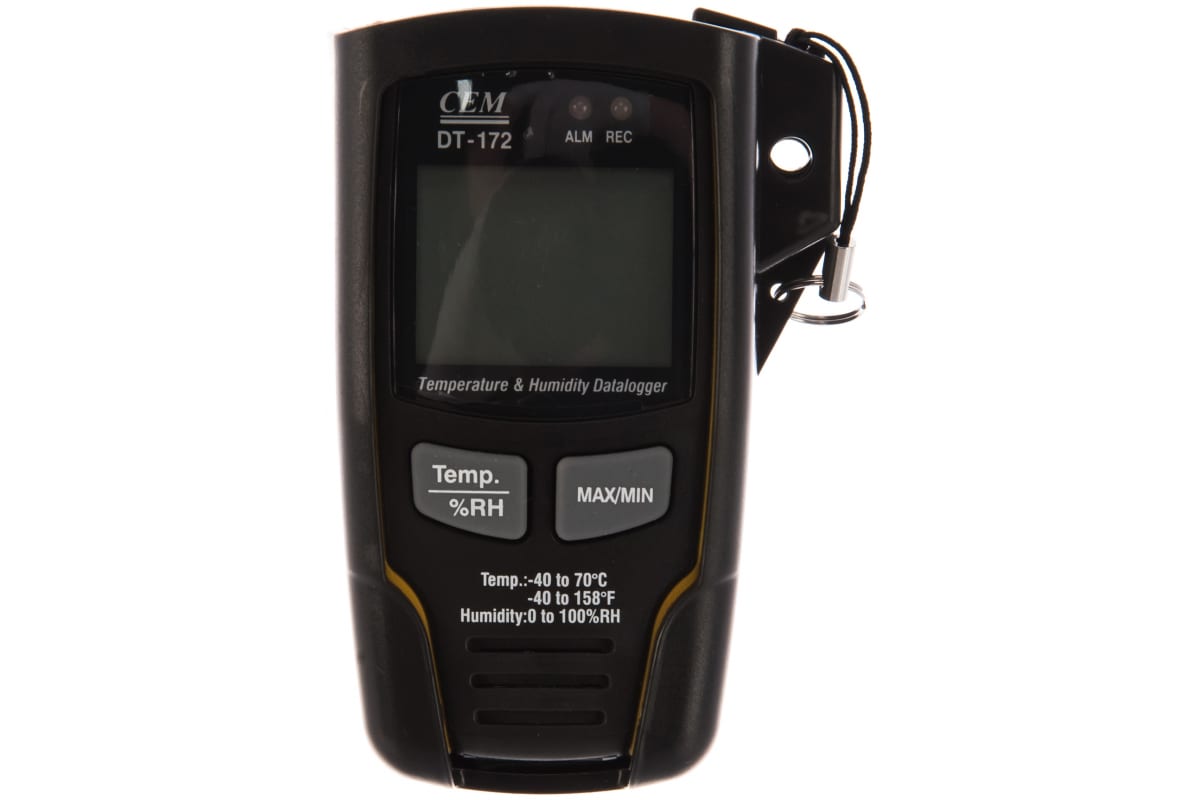 Регистратор температуры и влажности СЕМ DT-172 480298 весит всего 80 г, благодаря чему без труда транспортируется в кармане брюк или куртки. Модель позволяет сохранять до 32700 записей во внутренней памяти. Прибор улавливает изменения температуры на 0.1 градуса и влажности на 0.1%. В случае выхода значений температуры и влажности за заданные пределы срабатывает светодиодная индикация. Передача снятых показаний на ПК осуществляется через USB-разъем.