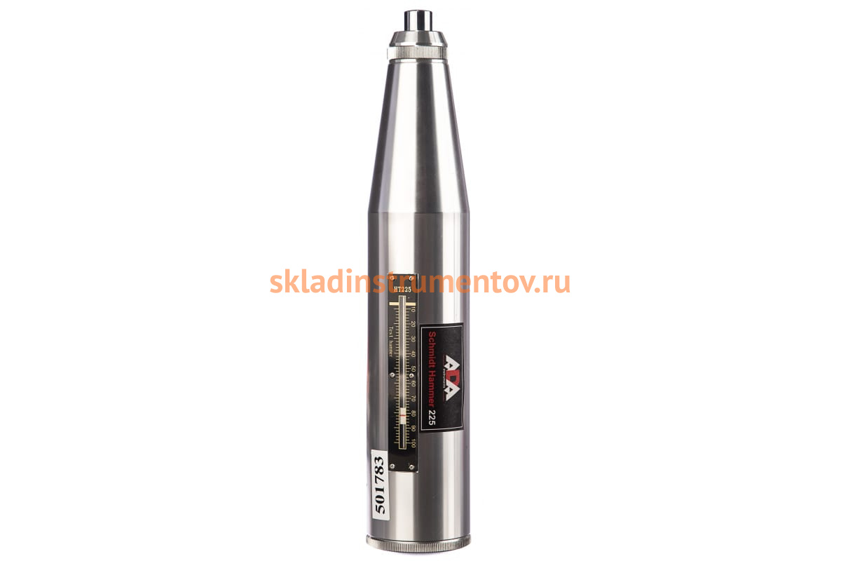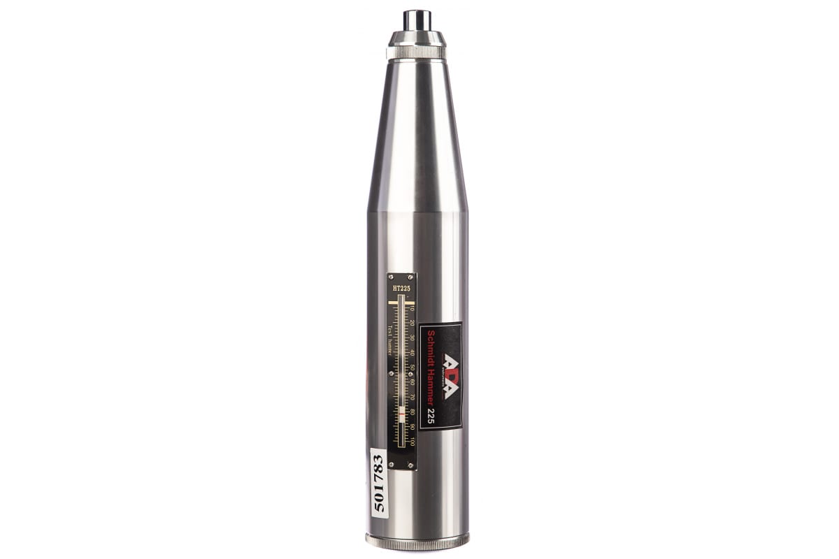 Измеритель прочности бетона ADA Schmidt Hammer 225 с калибровкой А00196 предназначен для определения прочности бетона на сжатие в диапазоне 10 - 60 МПа в бетонных и железобетонных конструкциях. Принцип действия основан на ударе бойка о поверхность бетона и измерении высоты его отскока. На корпусе прибора находится шкала с бегунком, которая обеспечивает визуальный контроль за полученными результатами. Высота отскока бойка при ударе на наковальне: 78±2 усл. ед. шкалы склерометра.