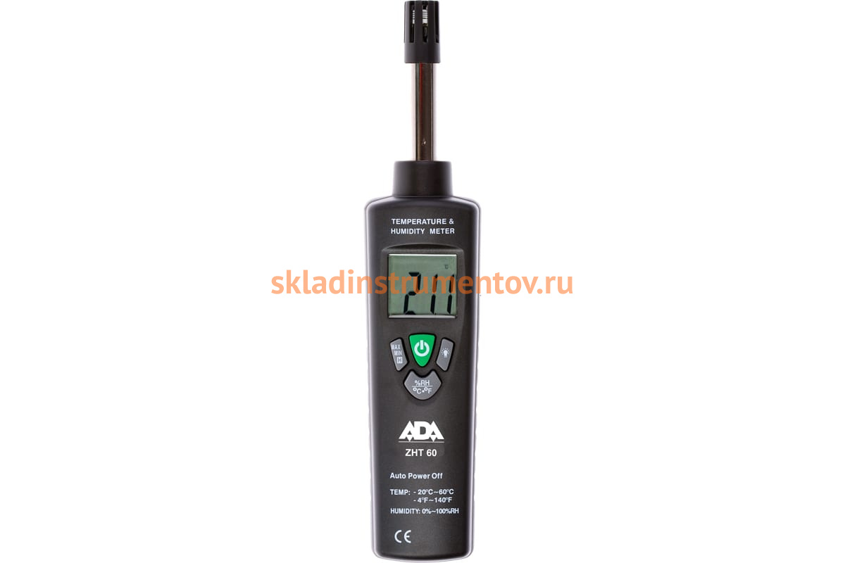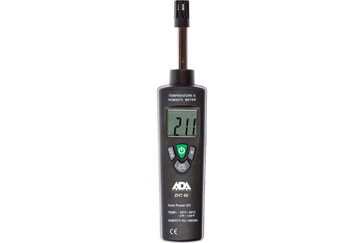 Измеритель влажности и температуры ADA ZHT 60 А00110 - это универсальный прибор. Область применения - измерение температуры и влажности воздуха. Устройство оснащено встроенной памятью и функцией запоминания максимального и минимального значения из полученных.