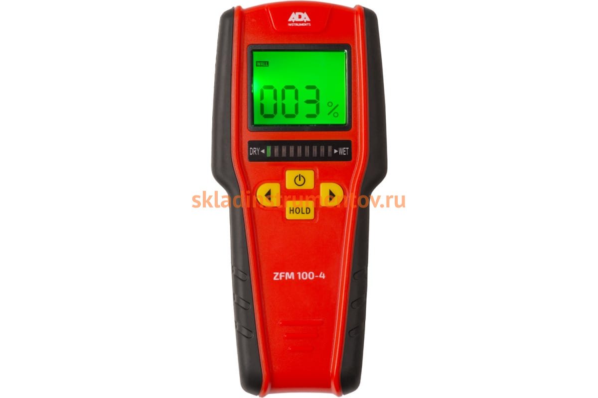Измеритель влажности ADA ZFM 100-4 А00397 - бесконтактный индуктивный прибор. Он помогает измерить 4 вида материала, а именно: твердую и мягкую древесину, гипсокартон и кирпичную кладку. Имеется функция удержания показаний. Сзади на изделии находится сенсор, с помощью которого измеряется влага. Благодаря небольшим габаритам он помещается в одной руке - для комфортной работы оператора. При бездействии, устройство автоматически отключается через 2 минуты. Модель питается от 1 батарейки 9 В (6F22 или 6LR6).