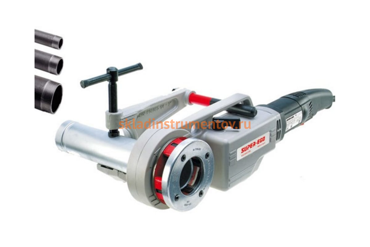 Электрический клупп в кейсе с головками 1/2”-2” SUPER-EGO supertronic 2000 864220200 имеет скорость резания от 15 до 20 об/мин (скорость обратного хода достигает 60 об/мин). Двойная изоляция обеспечивает безопасность модели в эксплуатации. Мощность двигателя составляет 1010 Вт. Пыленепроницаемый прочный корпус из алюминия увеличивает срок службы инструмента. Конструкция позволяет извлекать угольные щетки без необходимости разбора двигателя. Вес самого инструмента - 6.7 кг.