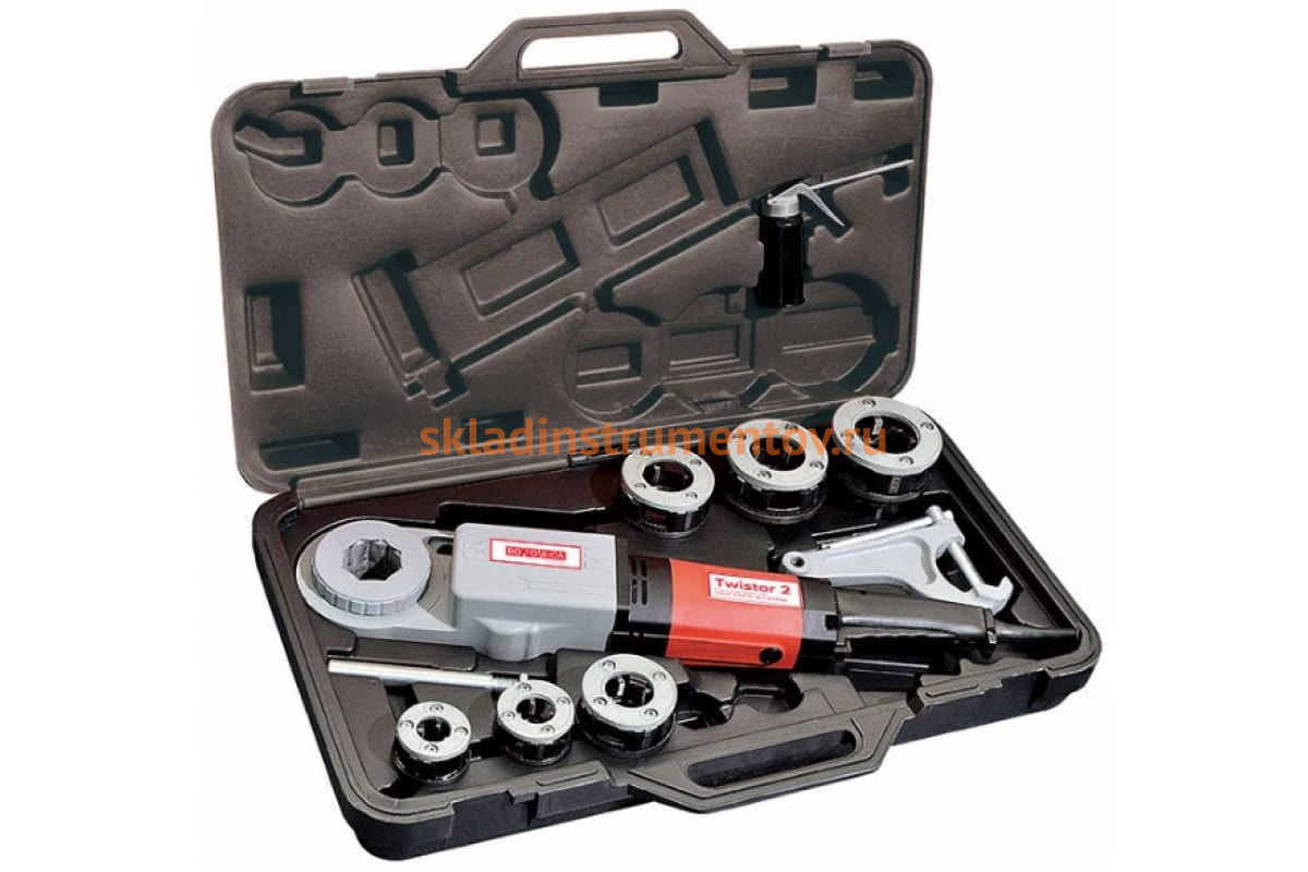 Электрический резьбонарезной клупп Rotorica Twistor 2 для труб диаметром 1/4 - 2 RT.1322000 позволяет быстро и качественно изготавливать резьбовые соединения. Электрический инструмент имеет мощность 1350 Вт. В комплекте с клуппом идут головки для нарезания резьбы размером 1/2, 3/4, 1, 1 1/4, 1 1/2, 2". Набор поставляется в пластиковом переносном кейсе.