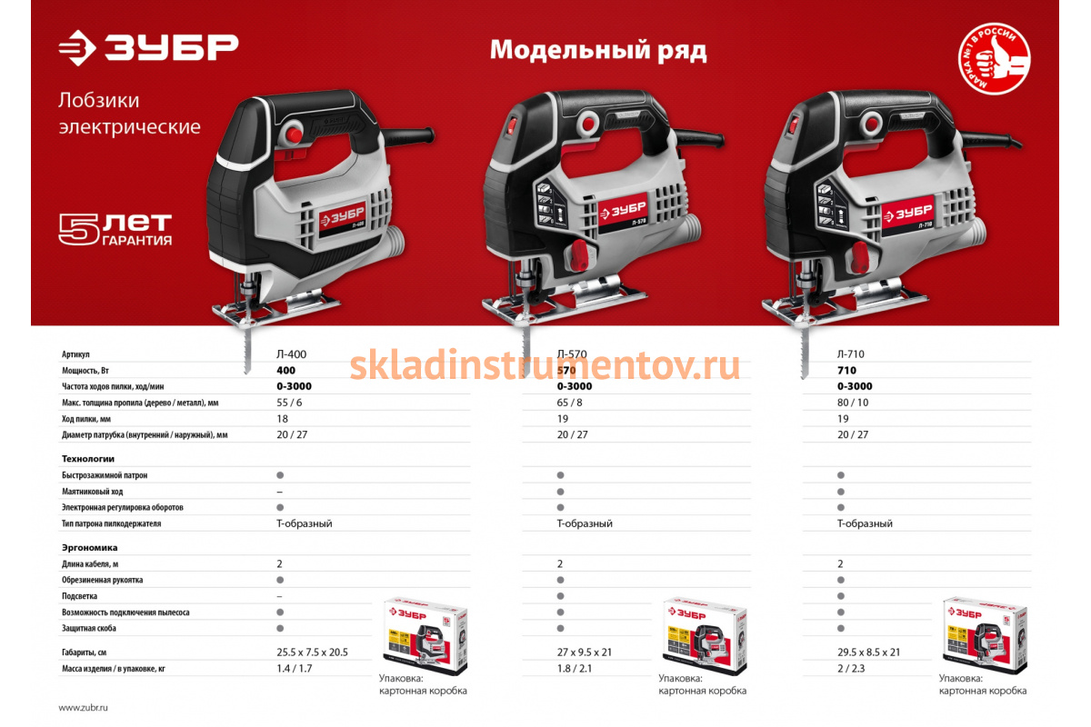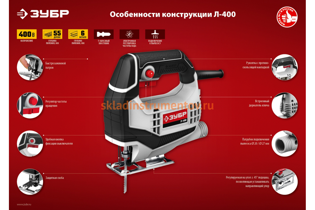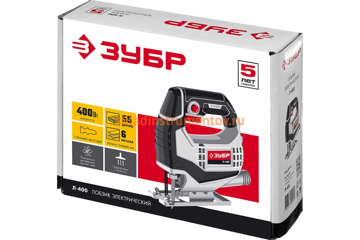 Электрический лобзик Зубр Л-400 предназначен для домашних мастеров. Подходит для пиления древесины, фанеры, ДСП, пластика, металла (при наличии соответствующей оснастки).