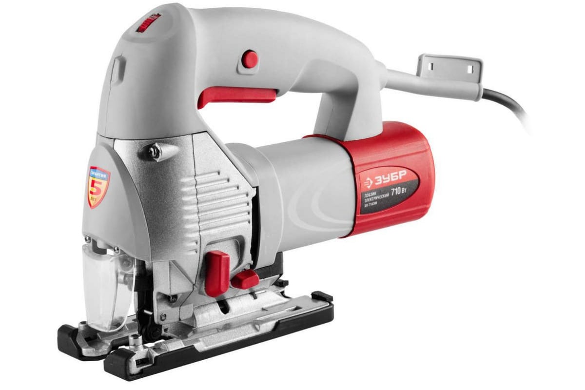 Электрический лобзик ЗУБР ЗЛ-710ЭМ выполняет сложные фигурные и ровные резы в древесине толщиной до 100 мм и стали толщиной до 10 мм. Это современная, высокопроизводительная "минипила", совершающая от 500 до 3000 ходов в минуту, оснащённая универсальным пилкодержателем, подходящим для хвостовиков EU и ES типа. Он оснащен дополнительными приспособлениями - лазерное наведение, литая подошва с углом установки от - 45 о до +45о, маятниковый ход полотна в трёх позициях, электронная регулировка частоты хода, которые помогают достичь отличного результата в работе. Фиксатор кнопки выключателя снизит утомительность длительного рабочего процесса. Благодаря обдуву рабочей зоны, предотвращается заклинивание пилки.