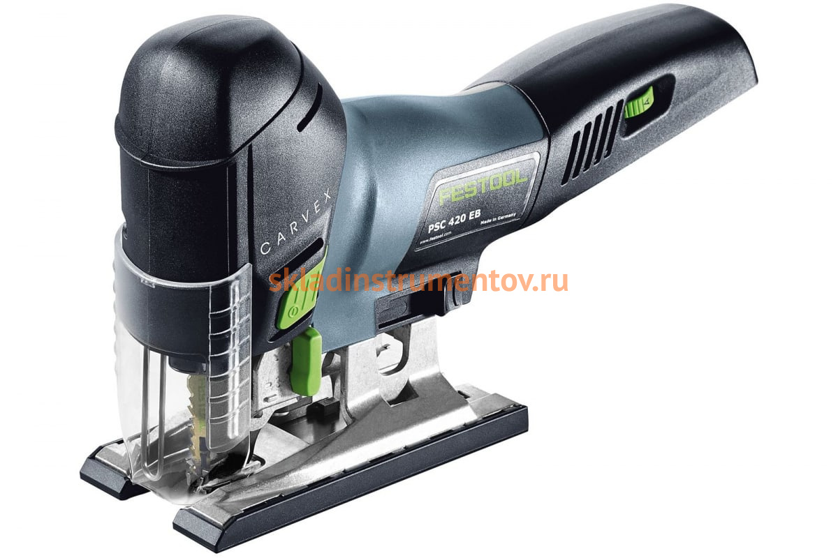 Аккумуляторный лобзик Festool CARVEX PSC 420 Li EB-Basic 574713 служит для выпиливания окружностей и закруглений, поперечного распила, выпиливания пазов и т.д. Он имеет систему тройного направления пильного полотна, что препятствует уводу пилки при выполнении криволинейных пропилов. Бесключевая замена пилки и рычаг выталкивания пильного полотна обеспечивают быструю и безопасную замену оснастки. Благодаря стробоскопной подсветке гарантируется точность распила.