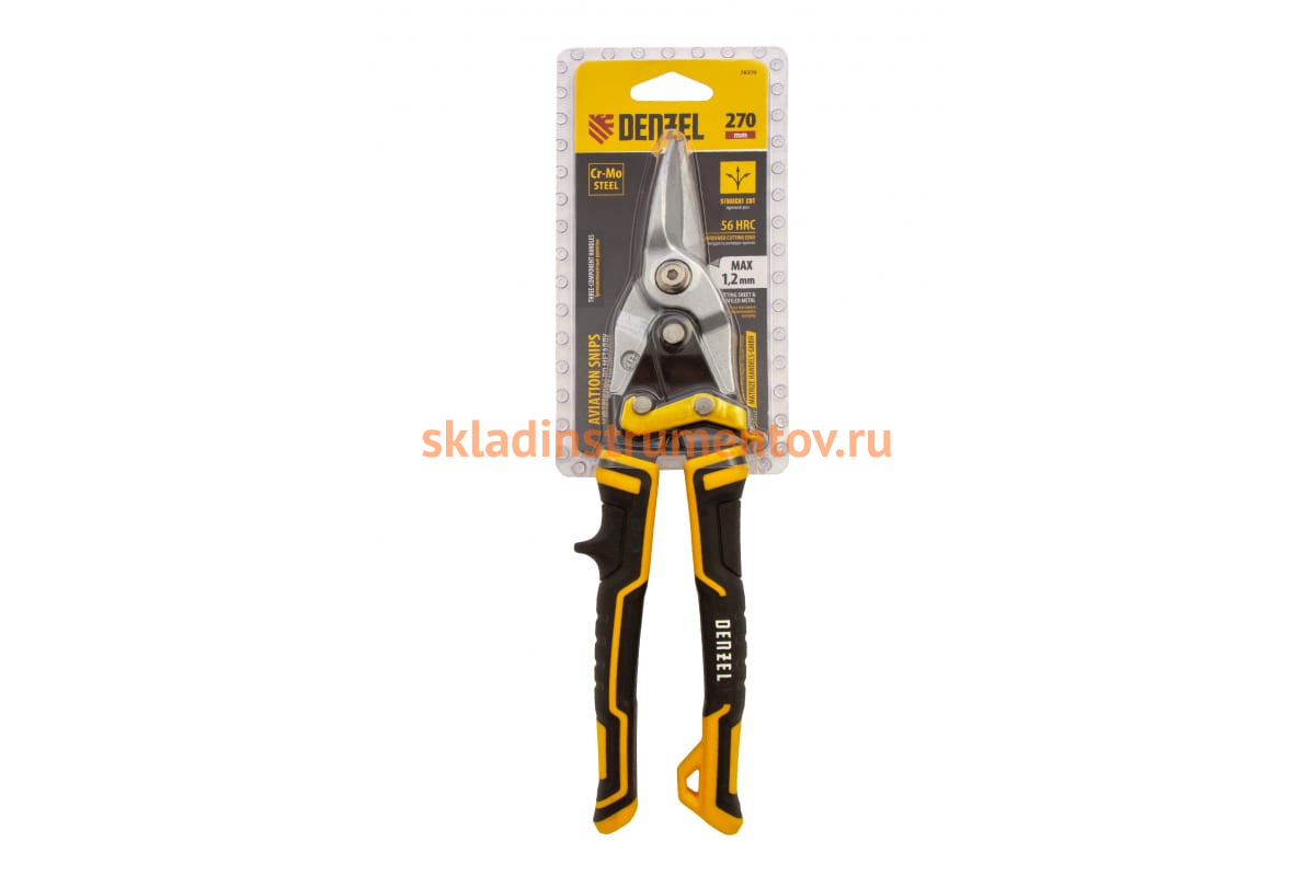 —Ножницы по металлу Denzel 270мм, прямой рез,сталь-CrMo, трехкомп.рук-ки 78370