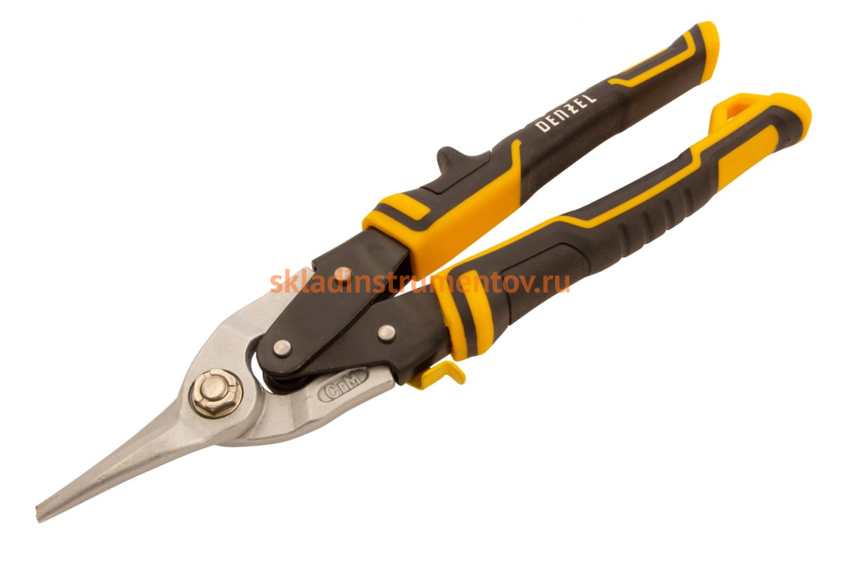 Ножницы по металлу Denzel 270мм, прямой рез,сталь-CrMo, трехкомп.рук-ки 78370