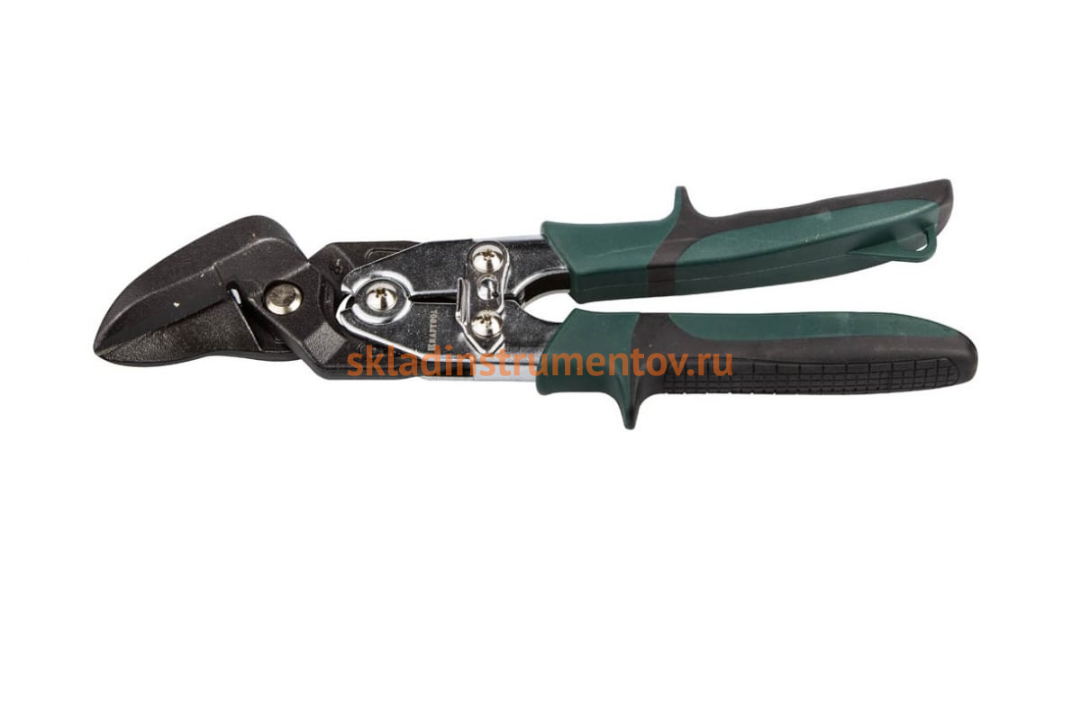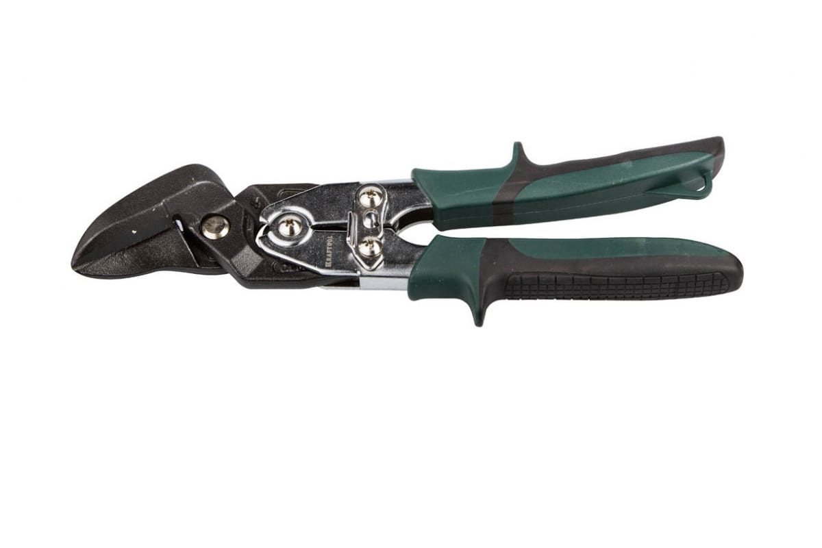 Ножницы по металлу KRAFTOOL 2325-R предназначены для правого, прямого и проходного реза. Специальный механизм запирания надежно удерживает режущие части ножниц. Накладки на рукоятках обеспечивают надежный хват инструмента.