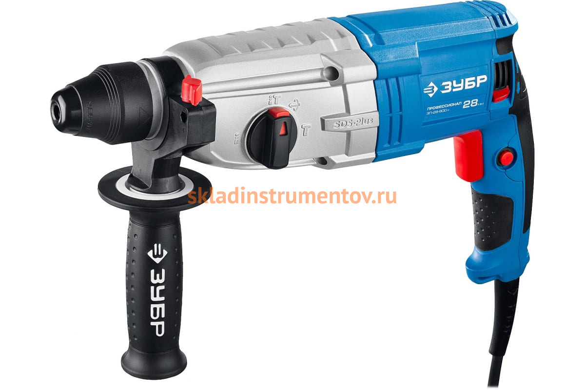 Перфоратор Зубр ЗП-28-800 К имеет усовершенствованный ударный механизм, что обеспечивает высокую производительность. Дополнительная рукоятка позволяет лучше удерживать инструмент. Предусмотрено три режима работы: сверление, сверление с ударом, долбление. Также есть режим поворота долота. Модель поставляется в кейсе.