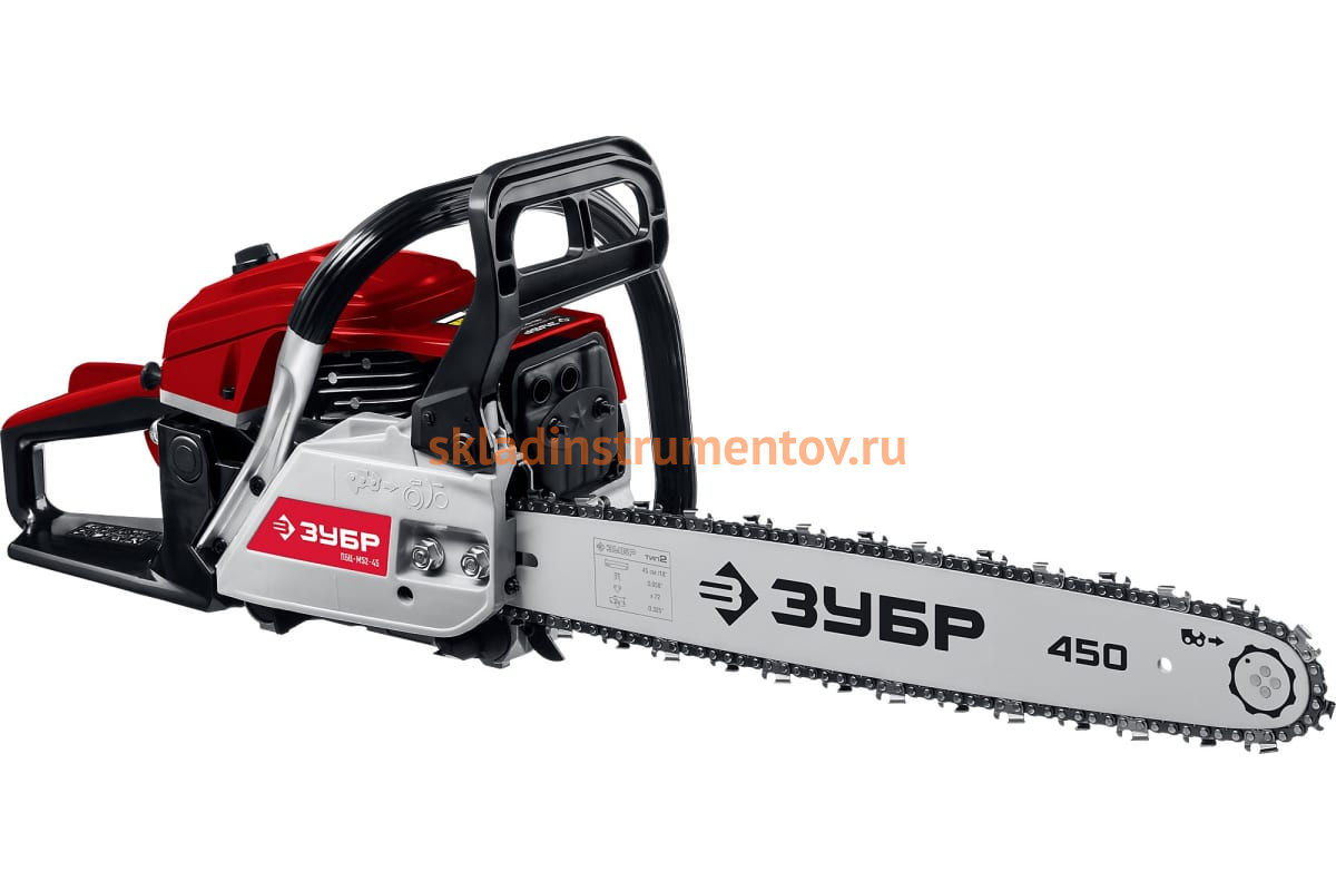 Бензопила Зубр ПБЦ-М52-45 используется пиления досок, бруса, стволов различных пород дерева.