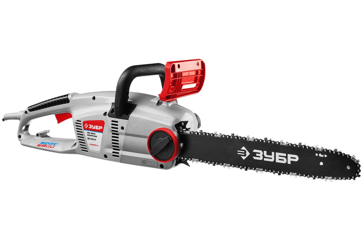 Цепная пила ЗУБР ЗЦП-2000-02 предназначена для валки деревьев, распиливания заготовок большого диаметра, деревянных балок и досок, обрезки сучьев.