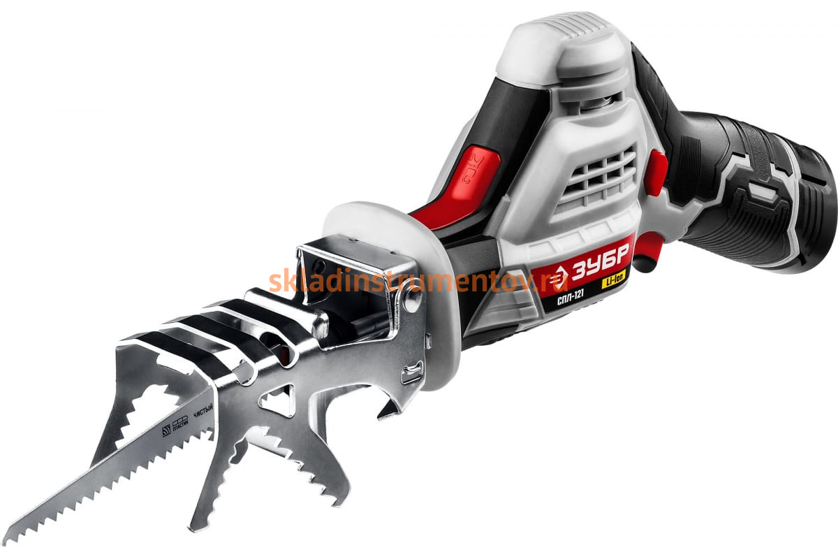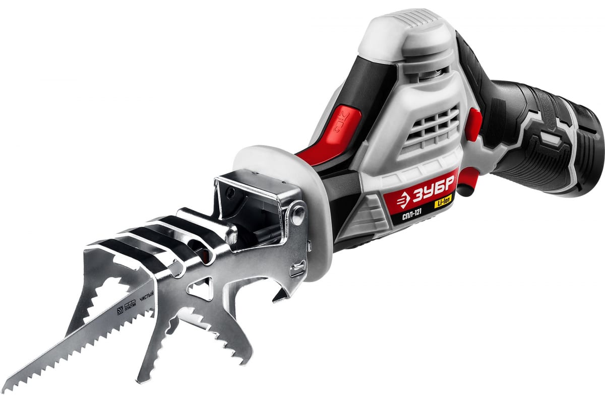 Сабельная пила ЗУБР 12В СПЛ-121 подходит для распила деревянных и металлических заготовок.