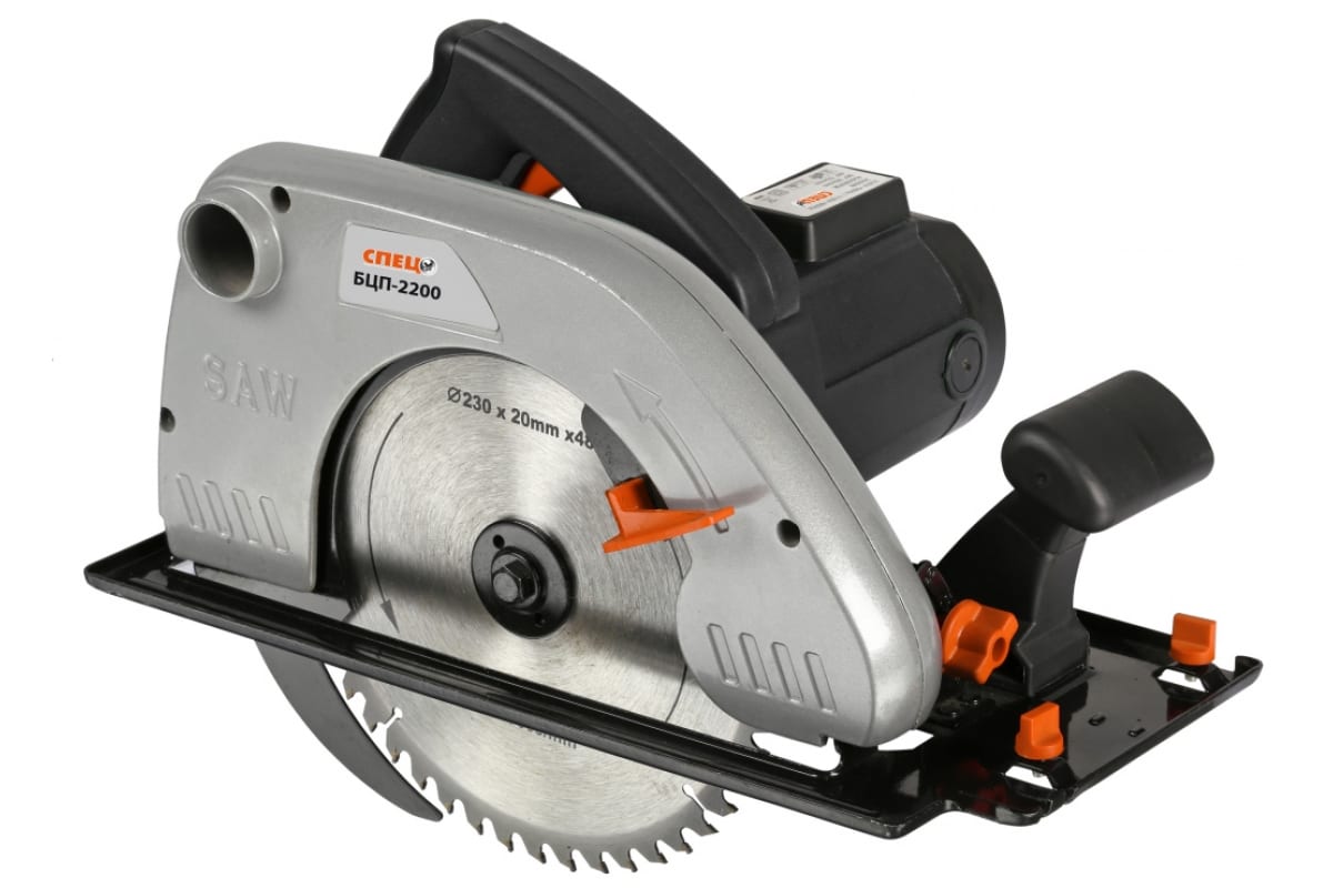 Циркулярная пила СПЕЦ БЦП-2200 СПЕЦ-3275 применяется для пиления древесины и древесно-стружечных плит. Двигатель мощностью 2000 Вт обеспечивает высокую производительность. Установка глубины пропила производится подъемом или опусканием подвижной части электропилы относительно основания. Максимальная глубина пиления составляет 80 мм под углом 90 градусов.