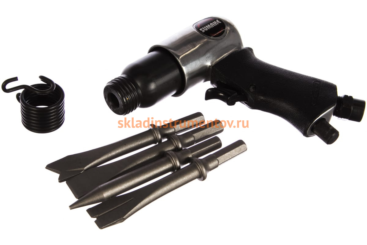 Пневмомолоток Sumake ST-2210/H - это инструмент, работающий на сжатом воздухе. Применяется для выполнения долбежных операций. Учитывая характер выполняемых работ, возможно использование разных зубил. В комплект поставки входят четыре зубила разных по форме.