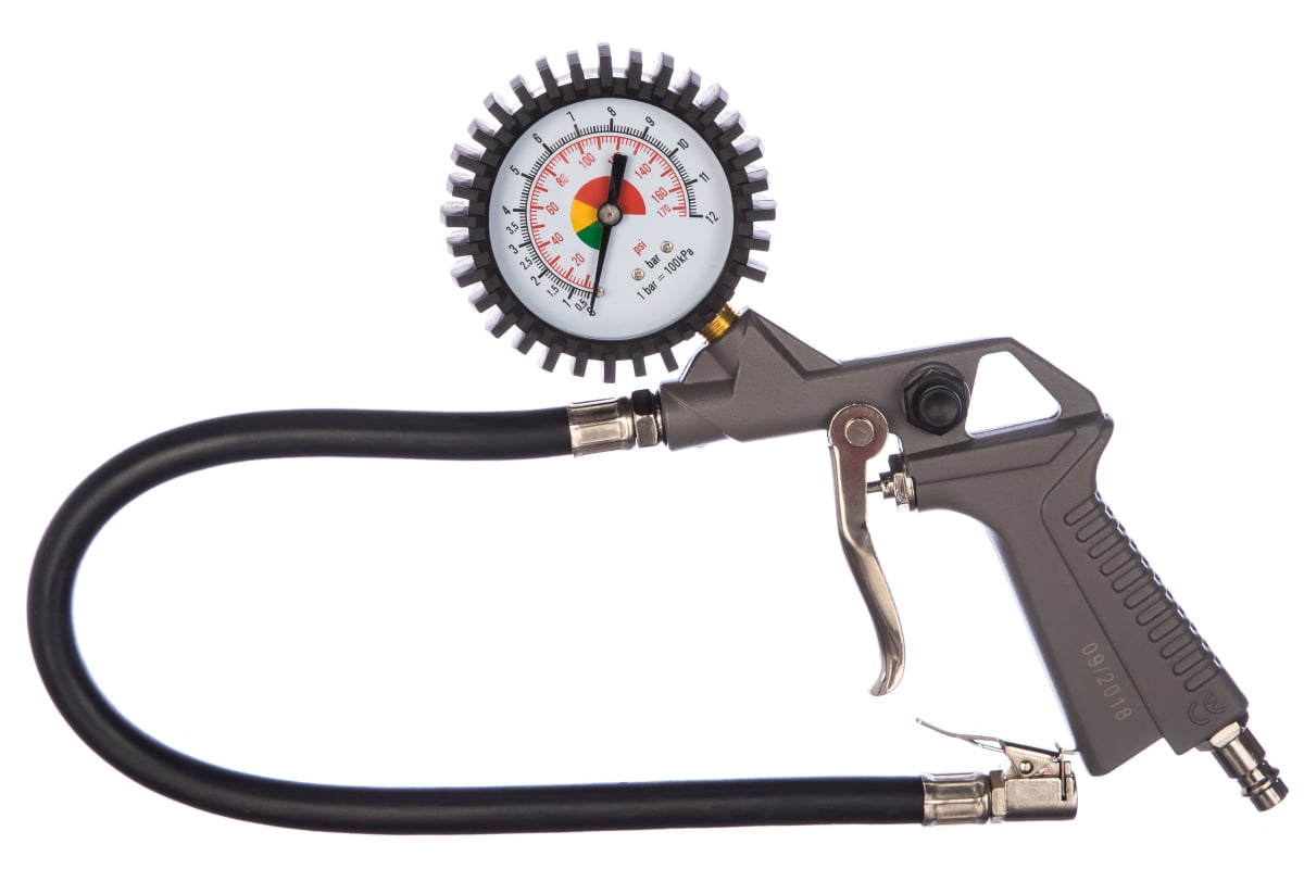 Пневматический пистолет QUATTRO ELEMENTI 770-919 используется для накачивания шин и прочих емкостей воздухом. Текущий уровень давления отображается на большом удобно читаемом манометре. Металлический корпус отличается хорошей устойчивостью к механическим повреждениям. Пневмоинструмент удобен при работе в местах, не обеспеченных электричеством. Шланг 400 мм.