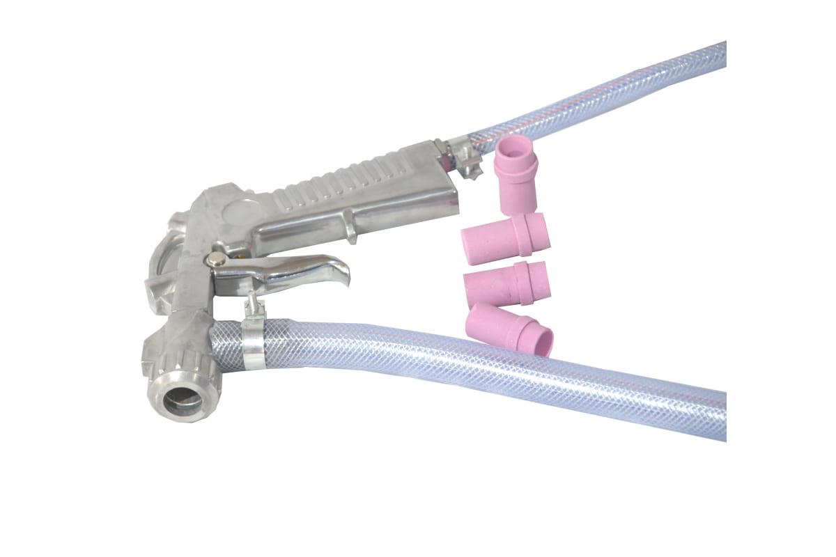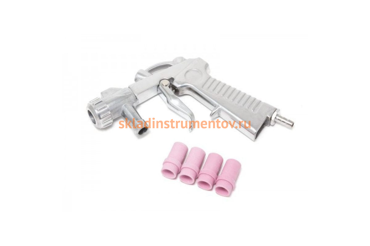 Пистолет пескоструйный для малых камер с форсунками 4 шт. AE&T T063M применяется с целью очистки поверхностей от ржавчины, грязи, краски и прочих загрязнений. Рассчитан на использование с пескоструйными аппаратами T06301, T06302, T06302A. Работает со специальной абразивной смесью или кварцевым песком. Поставляется в комплекте с форсунками.