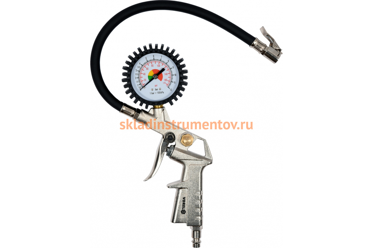 Пистолет для накачивания колес VOREL с манометром 81650 применяется для подкачки шин в автосервисе и шиномонтажных мастерских.